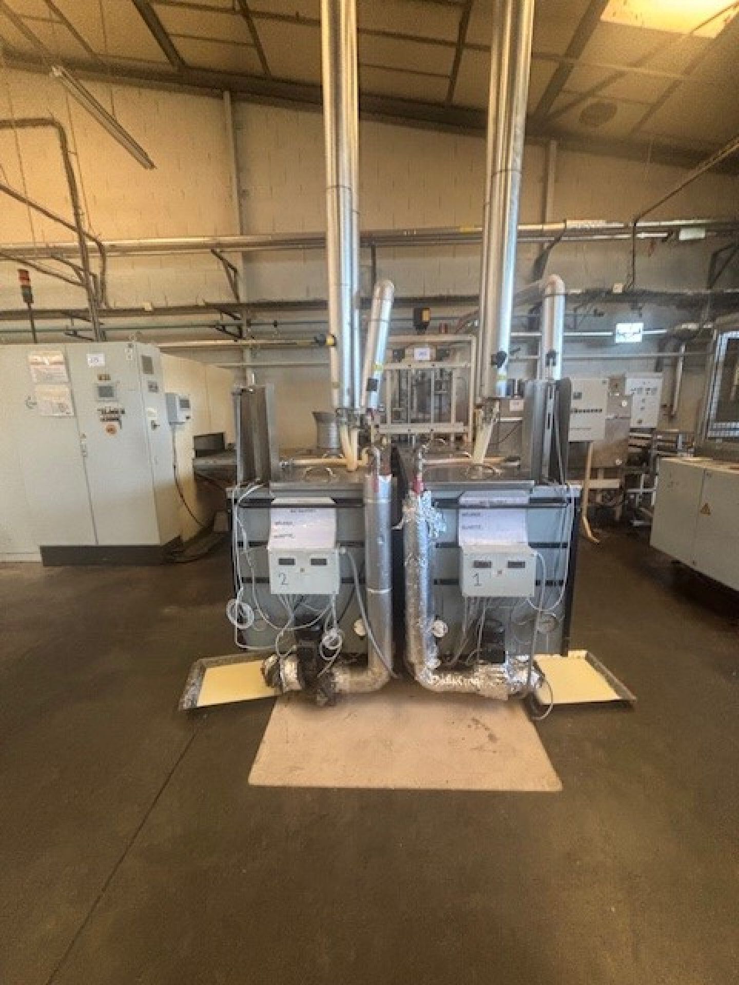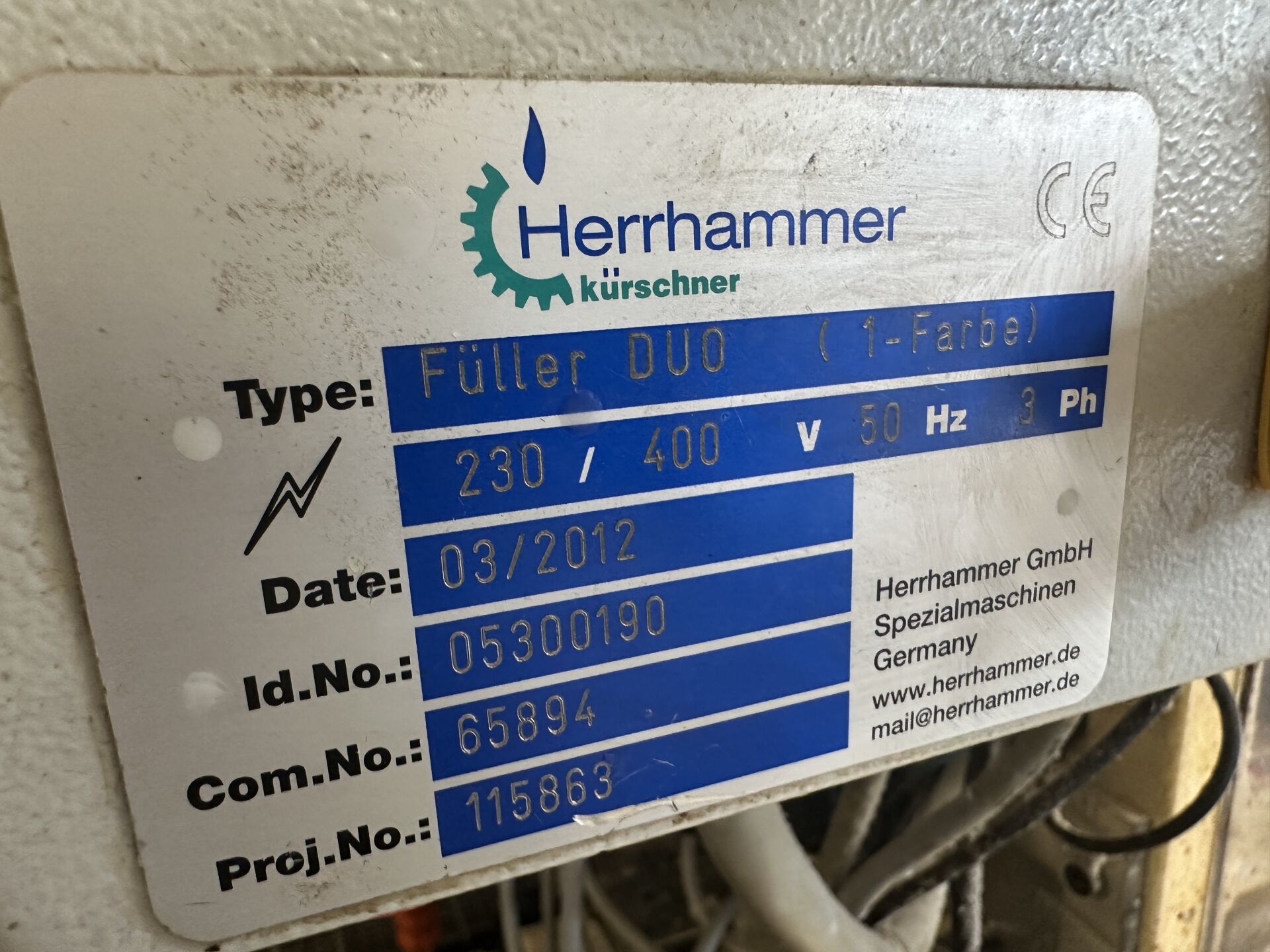 Ligne de remplissage (LR1) HERRHAMMER - FACULTE DE REUNION - ENCHERES PROVISOIRES : 2 bacs remplisseurs automatisés avec détecteurs et ouverture de buse 10 buses FULLER DUO No 05300190 de 2012 , cage de protection vitrée 200 x 110 cm + 2 bacs bain d'huile mobiles 232 X 80 X 90 cm hors roues (frais de mise à disposition 300 € TTC)