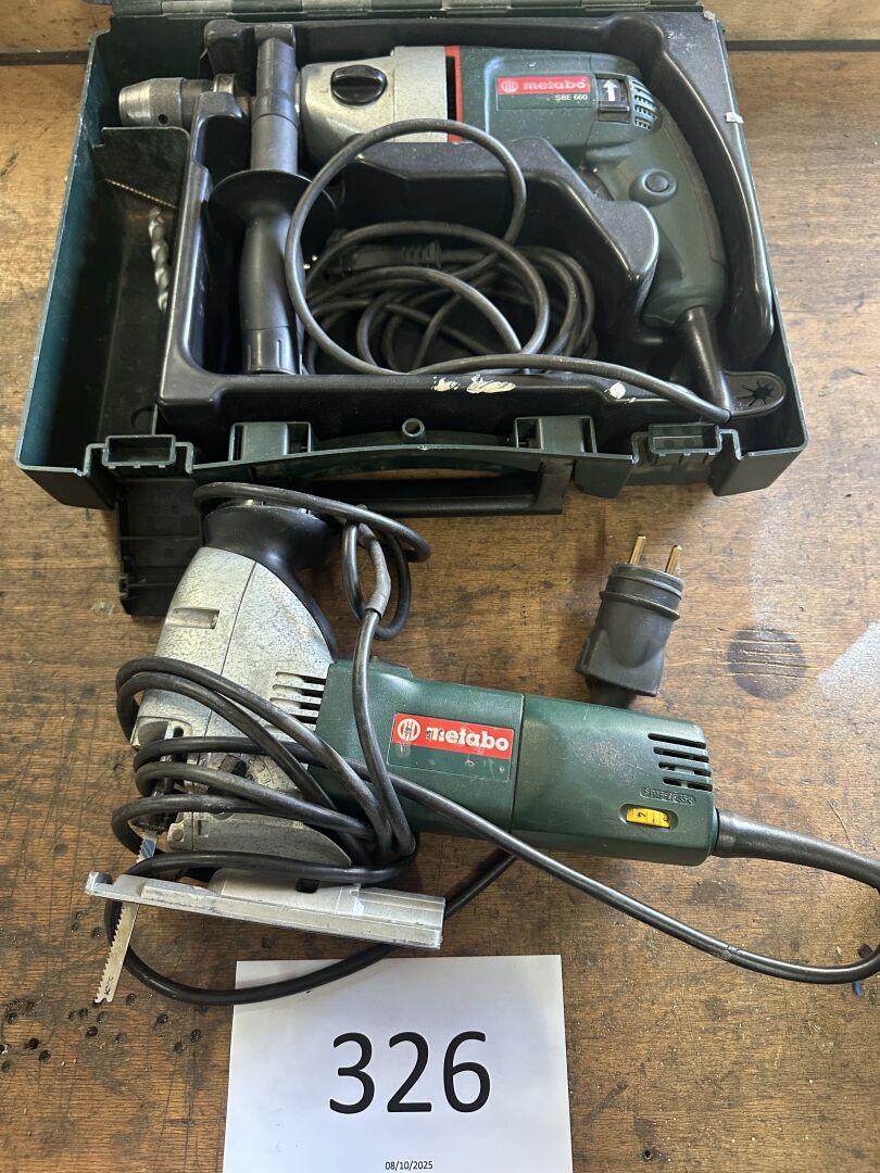 1 perforateur filaire METABO SBE 660 en coffret et 1 scie sauteuse METABO STE 105 PLUS (frais de mise à disposition 10 € TTC)