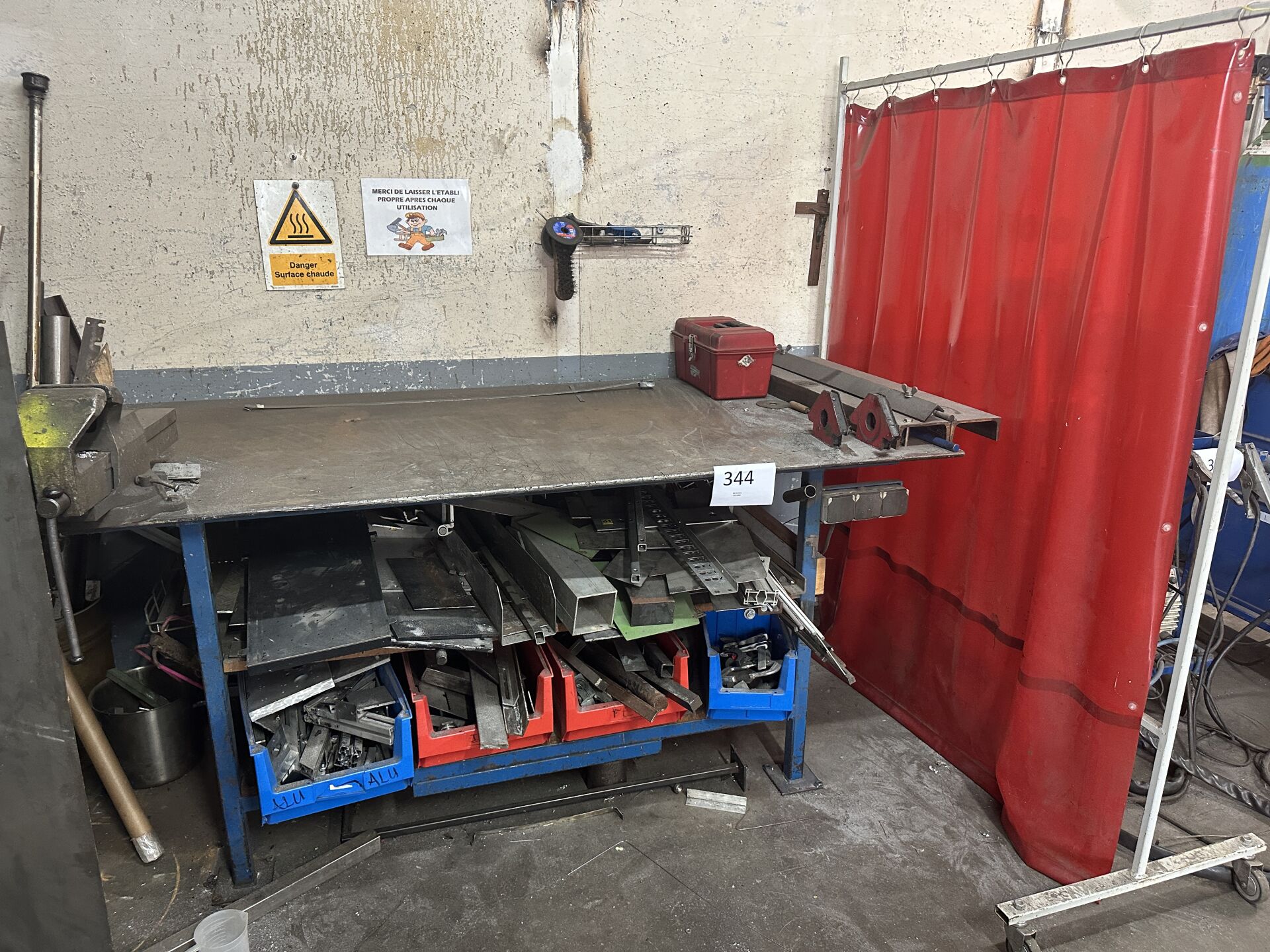 1 écran de soudure 140 x180 cm 1 table de soudage 200 x 100 cm équipée d'un étau mors parallèles + 1 lot de ferraille diverse (frais de mise à disposition 10 € TTC)