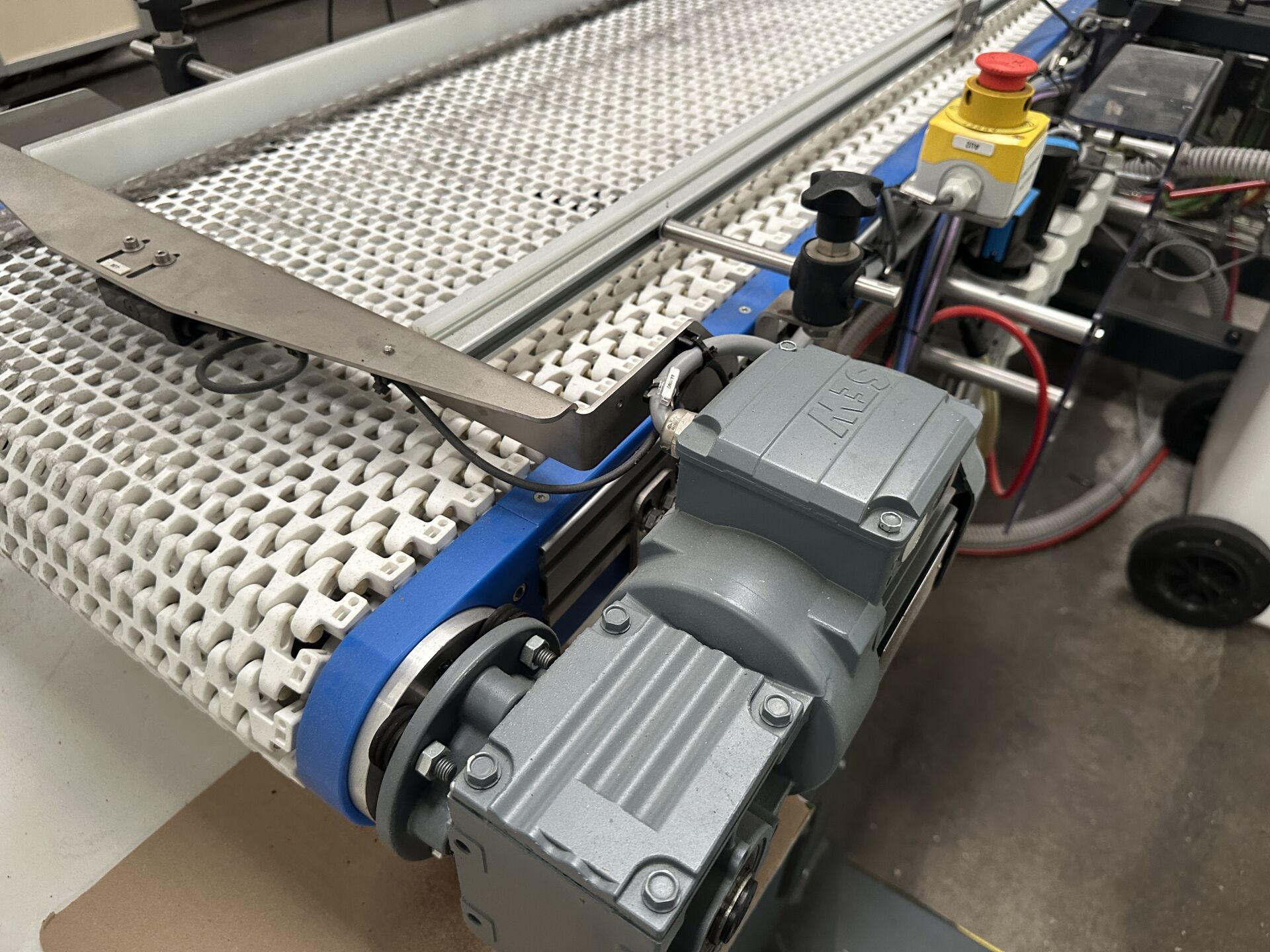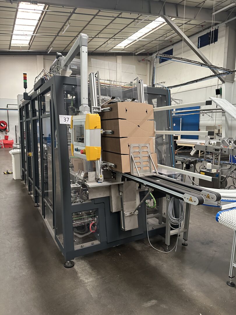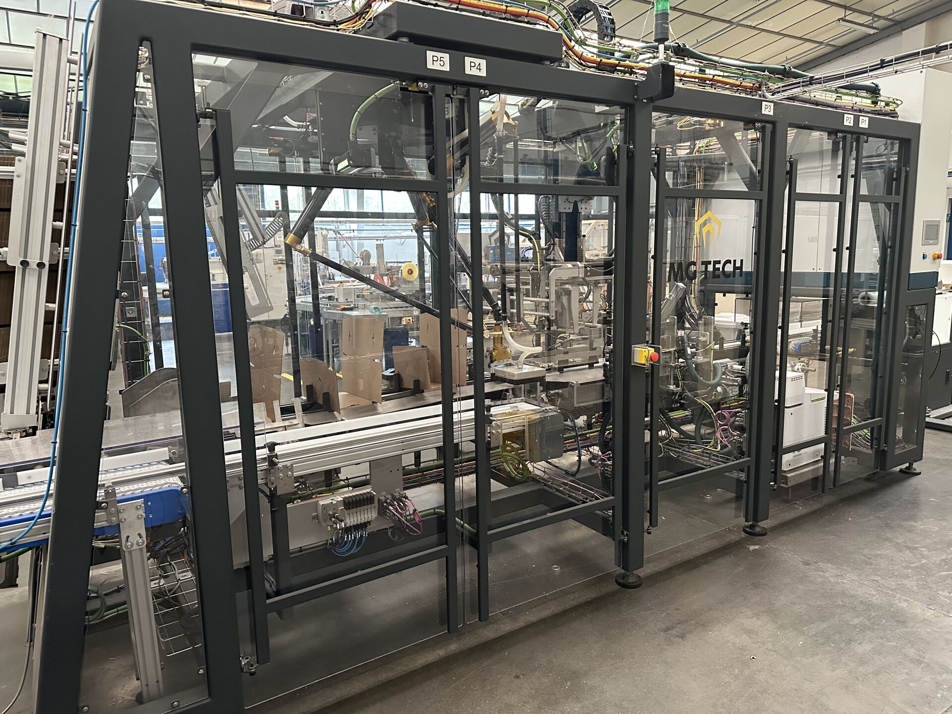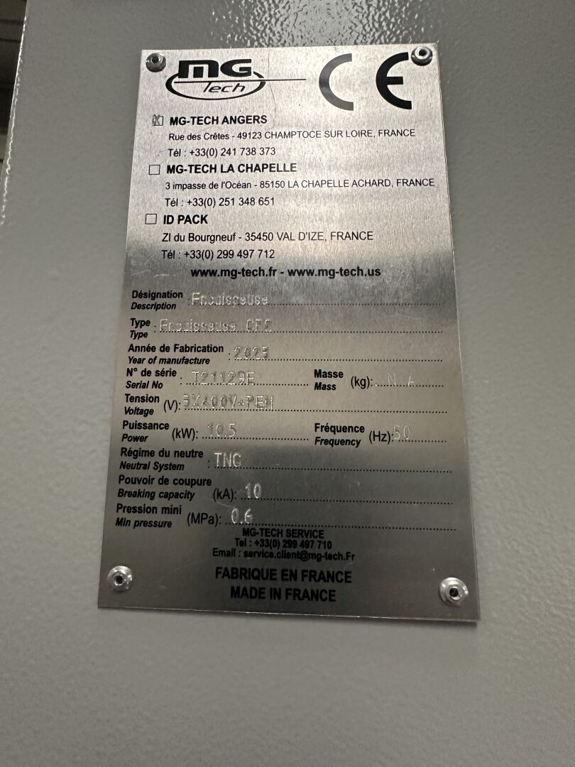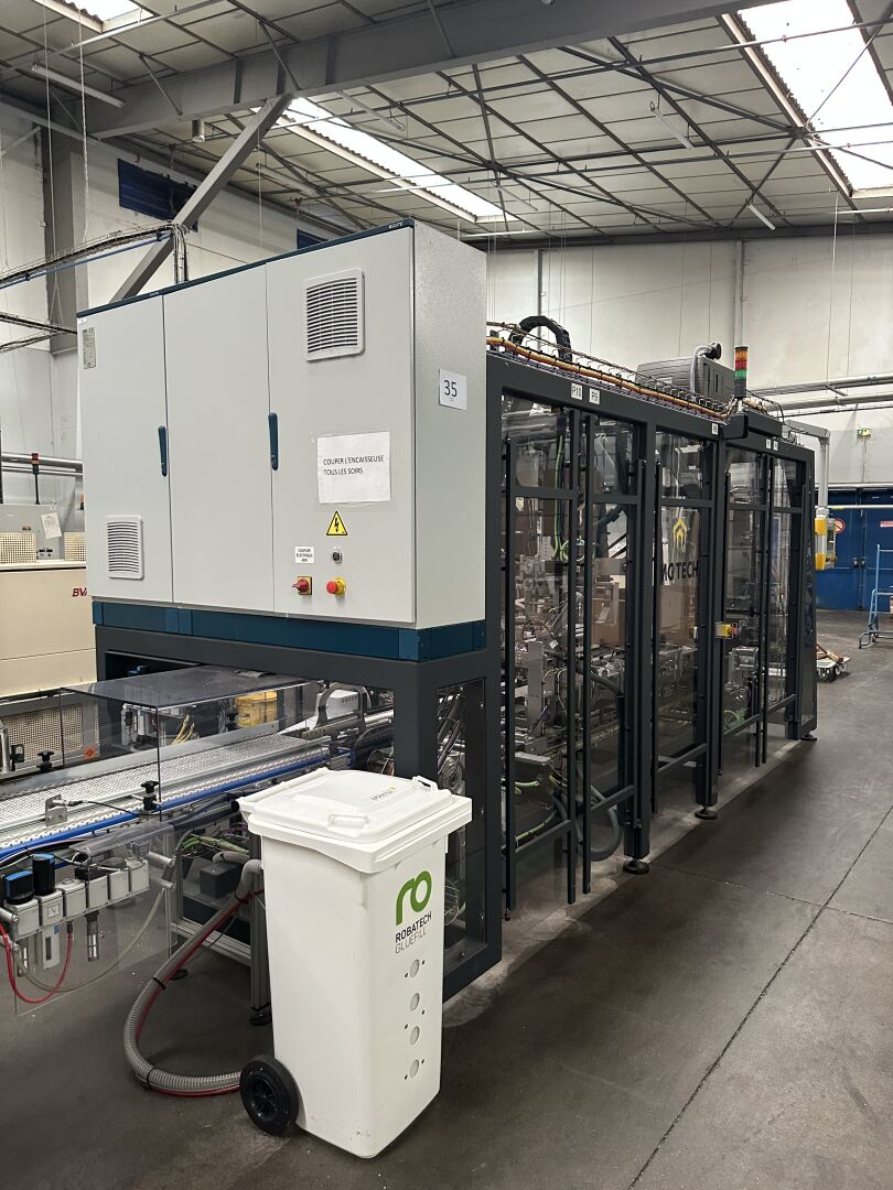 HALL 1 - Sur la ligne CP2 - FACULTE DE REUNION - ENCHERES PROVISOIRES : 1 unité encaisseuse WRAP MG TECH de 2023, No T21129 E 500 x 200 cm, équipée d'un tapis de convoyage à palettes, 200 x 50 cm, système automatique BECKER et ROBATECH VISION + imprimante LIMITRONIC V5 COMPACT (frais de mise à disposition 2000 € TTC)