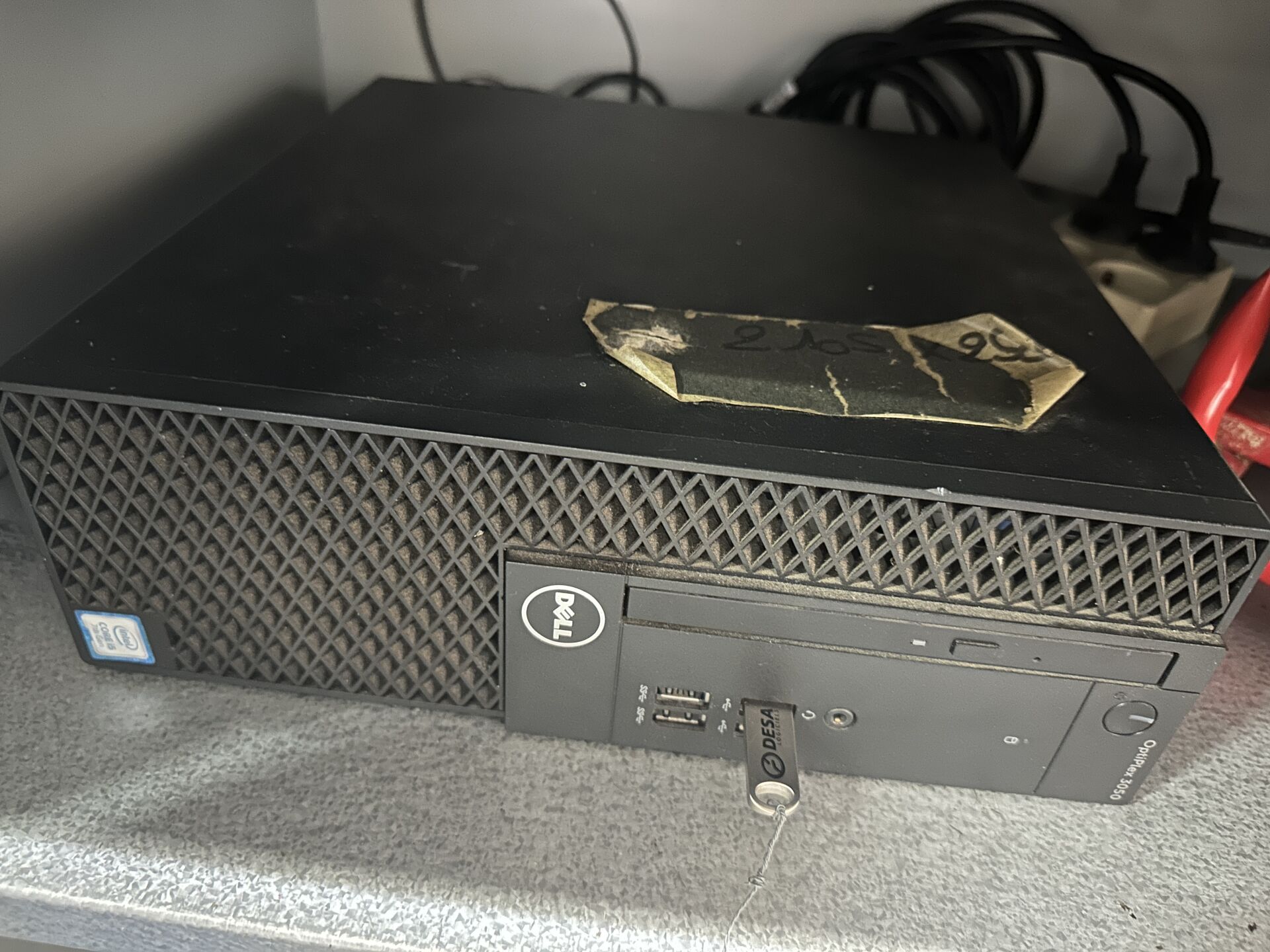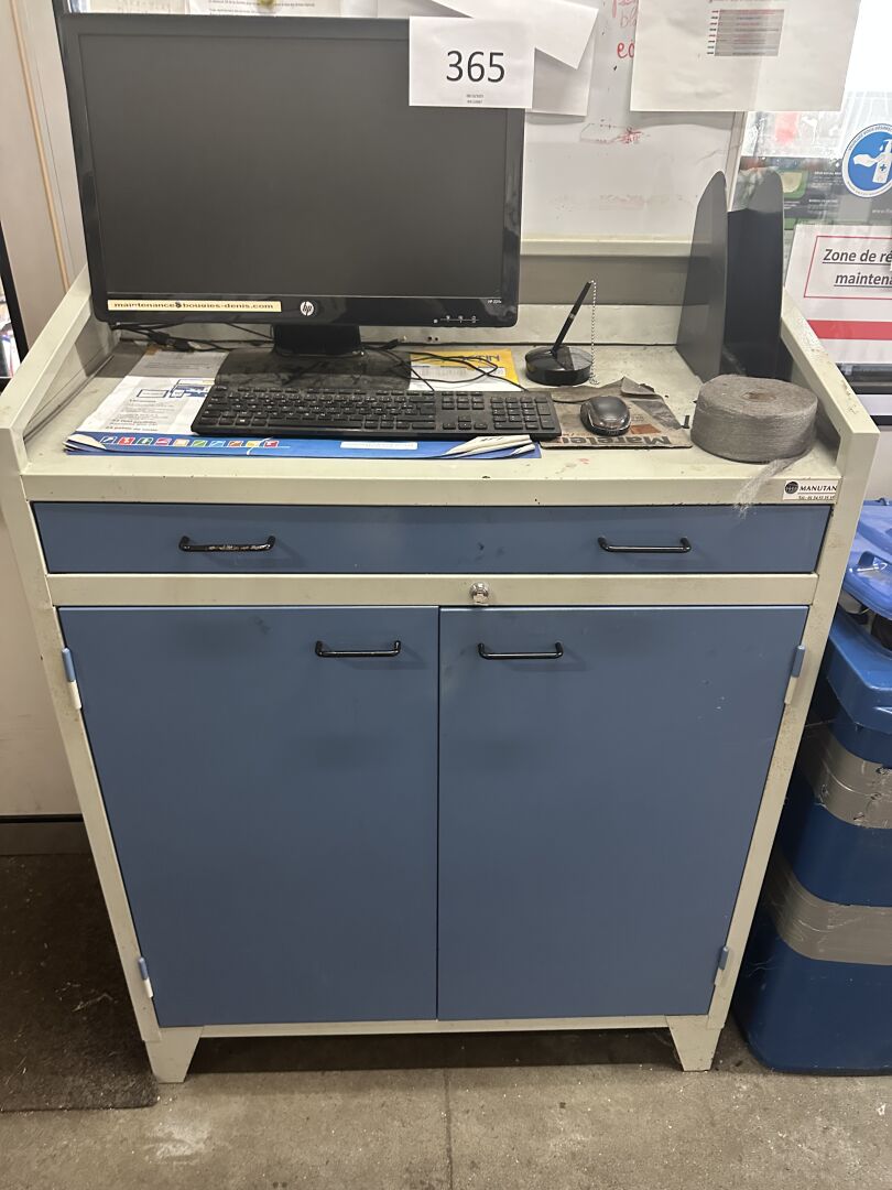 1 pupitre métal bleu/gris avec configuration informatique : 1 UC DELL OPTIPLEX 3050, core i5, écran HP, clavier, souris (frais de mise à disposition 10 € TTC)