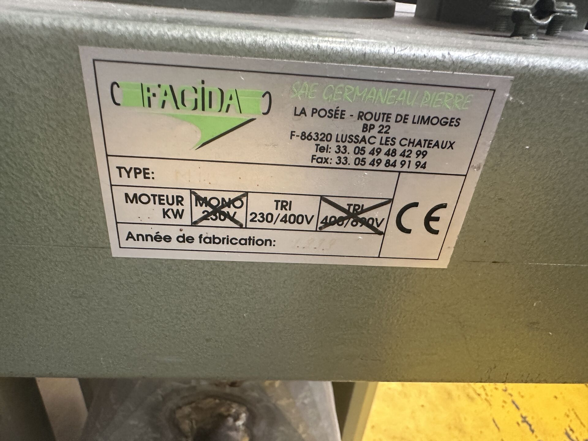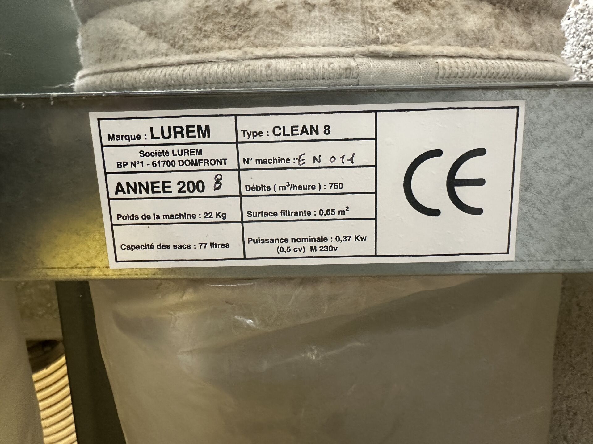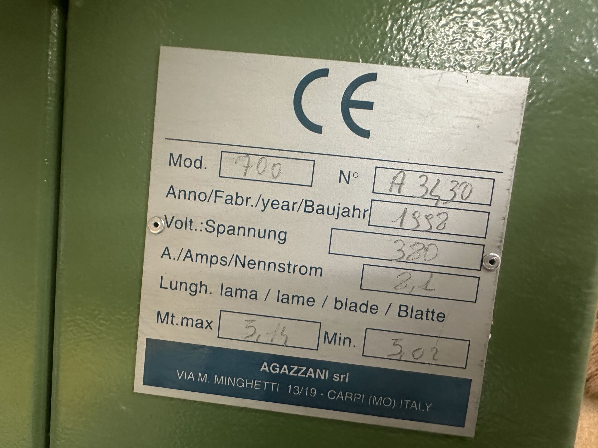 1 scie à ruban AGAZZANI 700 de 1998, lame de 5 m, table de travail 100 x 70 cm, avec 2 cartons de lames STARRETT FLB 5140 x 16 x 0.8 mm + groupe d'aspiration FAGIDA MIB PRO, triphasé, double entrée, 1 sac + 1 groupe d'aspiration mobile LUREM CLEAN 8 , de 2008, 1 sac (77 L) (frais de mise à disposition 10 € TTC)