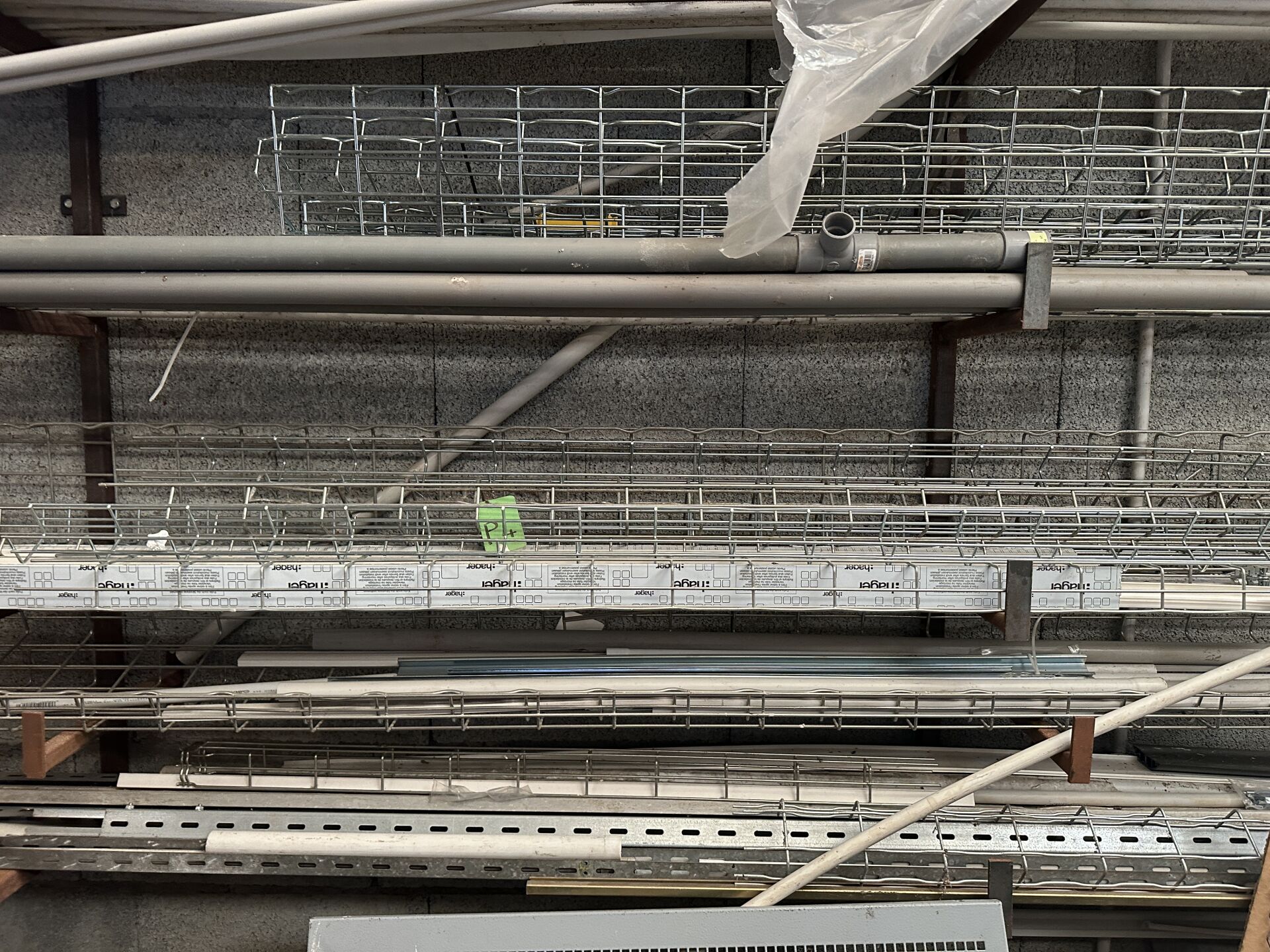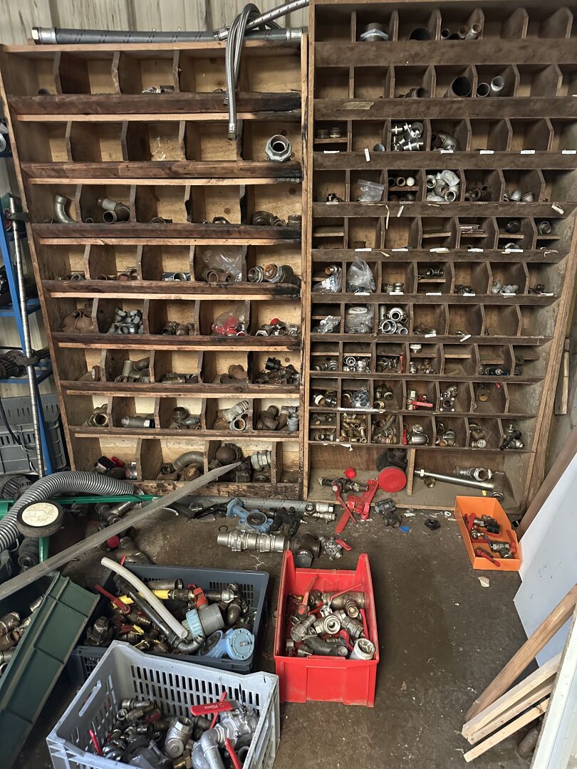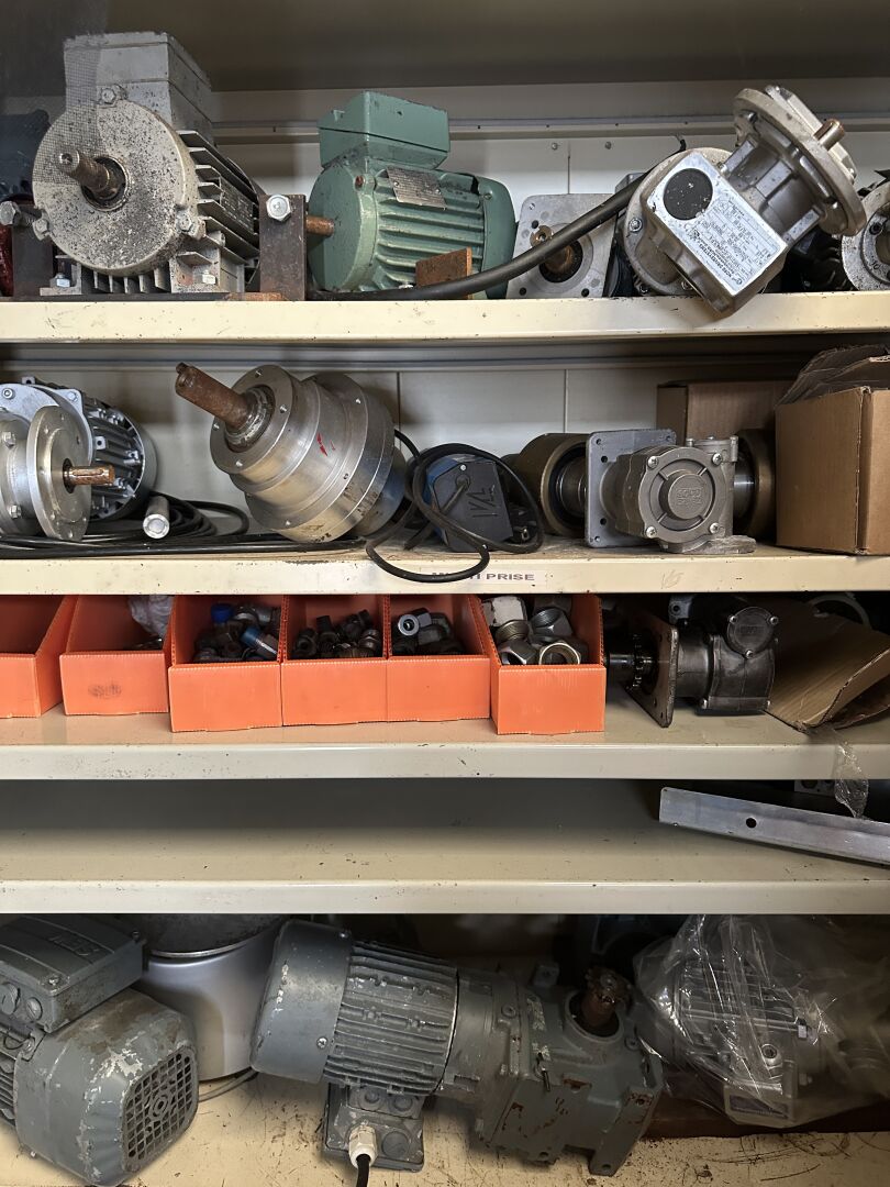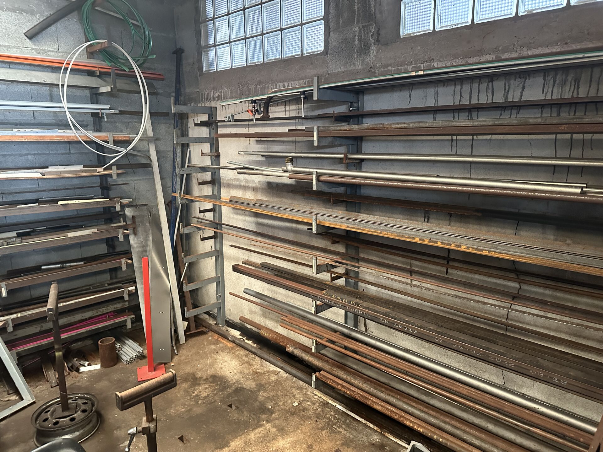 1 ensemble de mobilier et chariots en état moyen comprenant : 4 chariots verticaux métal bleu - 2 chariots de manutention - 3 armoires métal beige 2 portes - 3 étagères à pièces en bois 1 étagère métal bleu - 1 étagère métal gris - 2 étagères hautes métal - 1 étagère blanche - 1 étagère métal noir - 3 modules d'étagères - 2 servantes à rouleaux - 1 chariot archives -1 placard bas métal beige - 1 escabeau bois et tube état moyen - 1 module de vestiaires 2 cases métal gris - 1 établi plateau bois métal rouge équipé d'un étau mors parallèles - 1 vestiaire métal gris 2 cases - 1 vestiaire métal gris et bleu 2 cases 1 lot de pièces détachées de récupération essentiellement plomberie : raccords, vannes, ... et moteurs de convoyeurs, résistances thermiques, flexibles, gaines, pièces détachées diverses, roues de chariots, pièces rebutées, ventilateurs HS, transpalettes HS, chemins de câble, tubes PVC, petit stock de ferraille dont plats, tubes, carrés acier en 3 m (frais de mise à disposition 30 € TTC)
