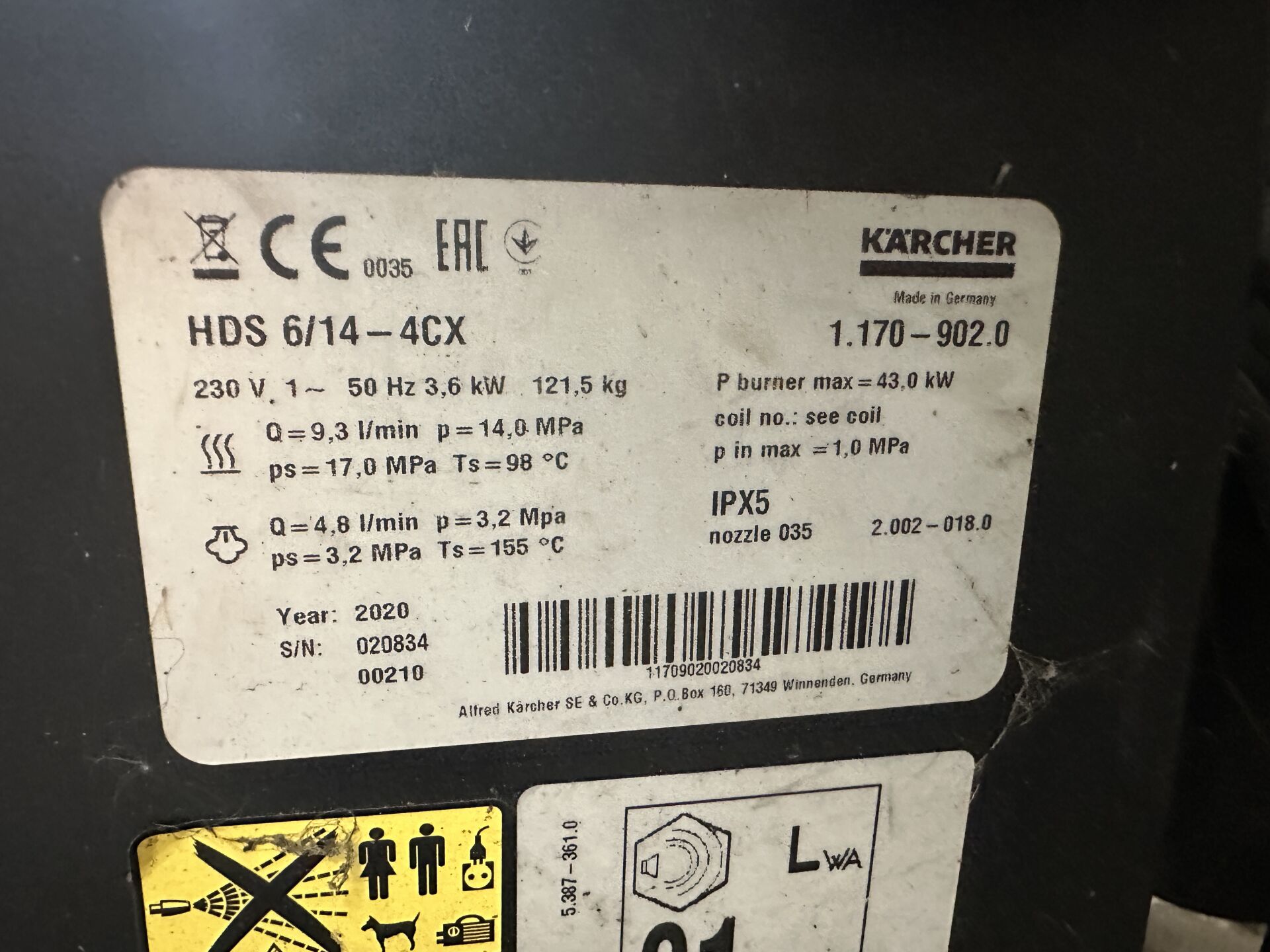 1 nettoyeur HP KARCHER HDS 614 de 2020 eau chaude eau froide avec lance et enrouleur intégré (frais de mise à disposition 10 € TTC)