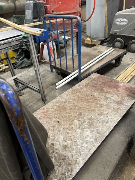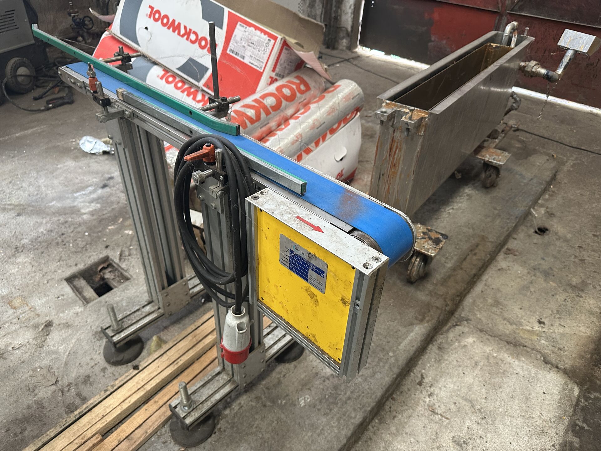 2 chariots tube bleu 1 pupitre métal bleu 2 convoyeurs rebutés 1 module de vestiaires métal gris 2 cases 1 vestiaire métal gris 2 portes 1 petite cuve mobile inox bain d'huile 120 x 15 x 45 cm (frais de mise à disposition 10 € TTC)