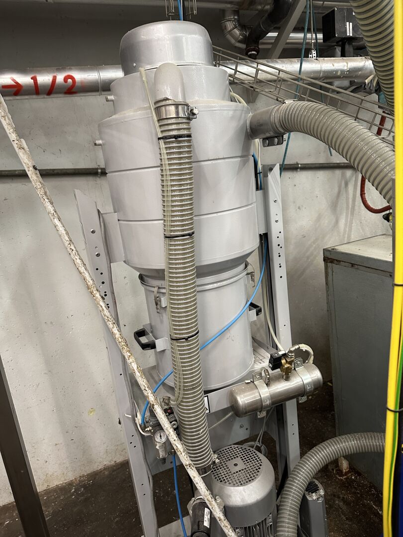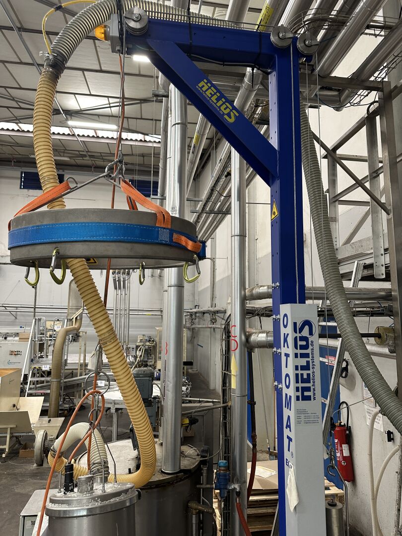 1 aspirateur granulés pour big-bag sur potence HELIOS OKTOMAT avec groupe intégré PLASTIC SYSTEMS modèle PD5F C3 de 2021 , hauteur potence 350 cm (frais de mise à disposition 10 € TTC)