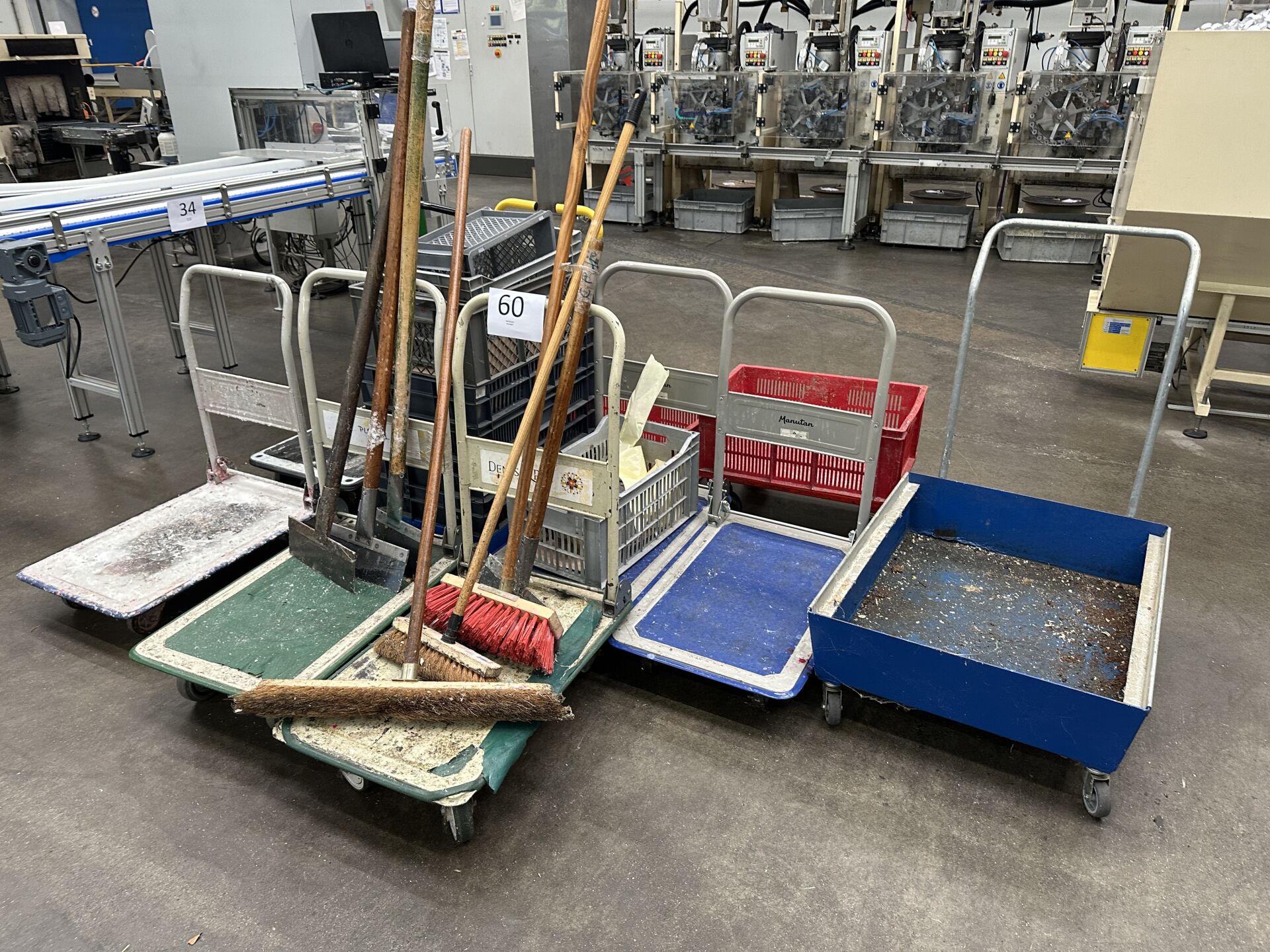1 armoire métallique 2 portes grise et bleue 95 x 40 x 195 cm (avec contenu) 1 ensemble de 6 chariots de manutention 1 chariot/bac de récupération 1 chariot porte-caisse avec 10 caisses PVC 4 raclettes + 2 balais (frais de mise à disposition 10 € TTC)