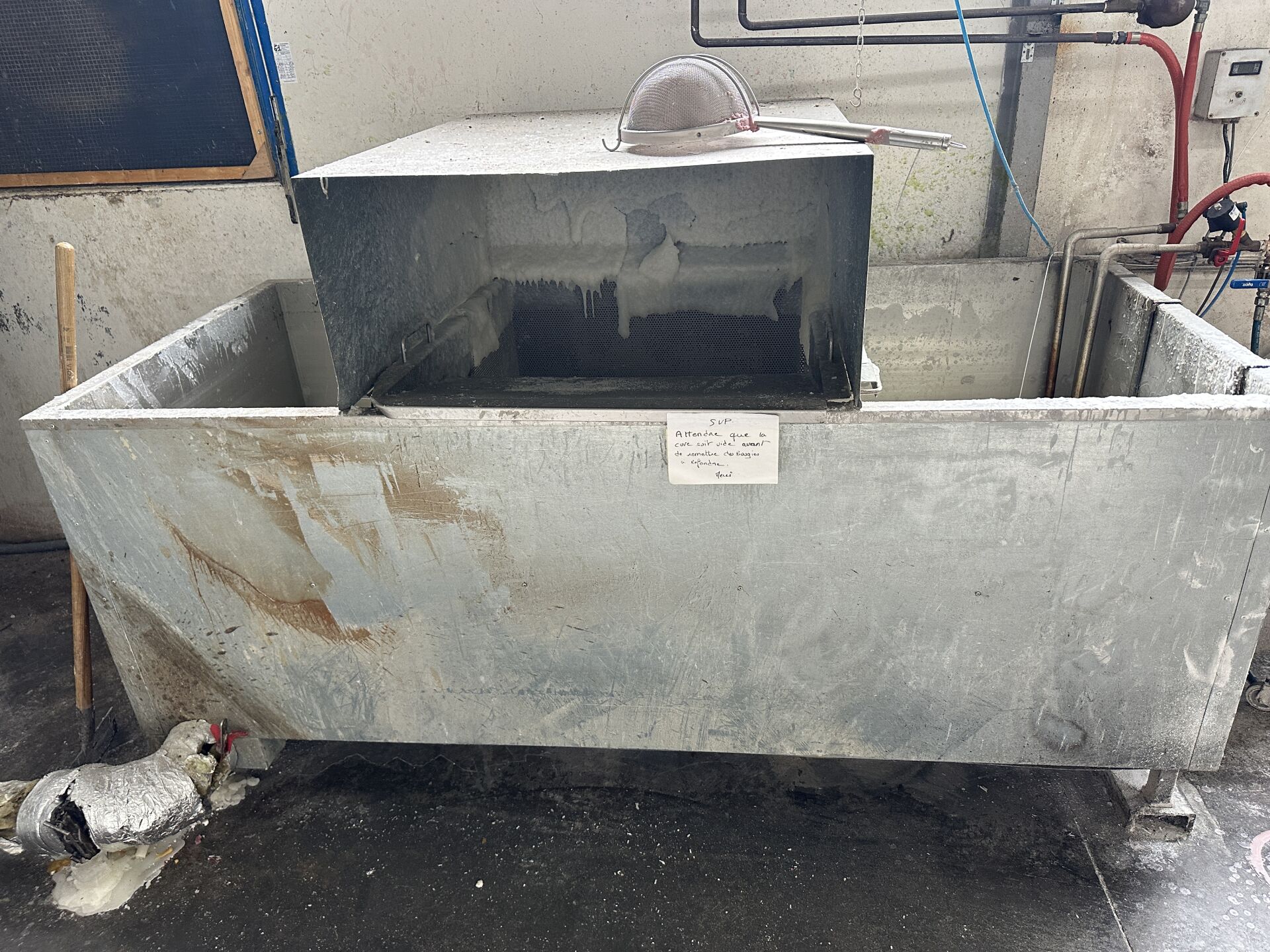 HALL 2 : 1 lot de cuves chauffantes : 1 cuve bain d'huile 2000 L alu ovale "mélange presse" alimentation HERRHAMMER WT300D 1 cuve bain d'huile 2000 L alu rectangulaire pour refonte de bougie (frais de mise à disposition 10 € TTC)
