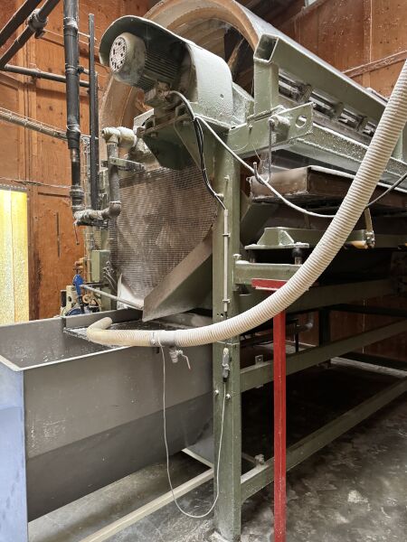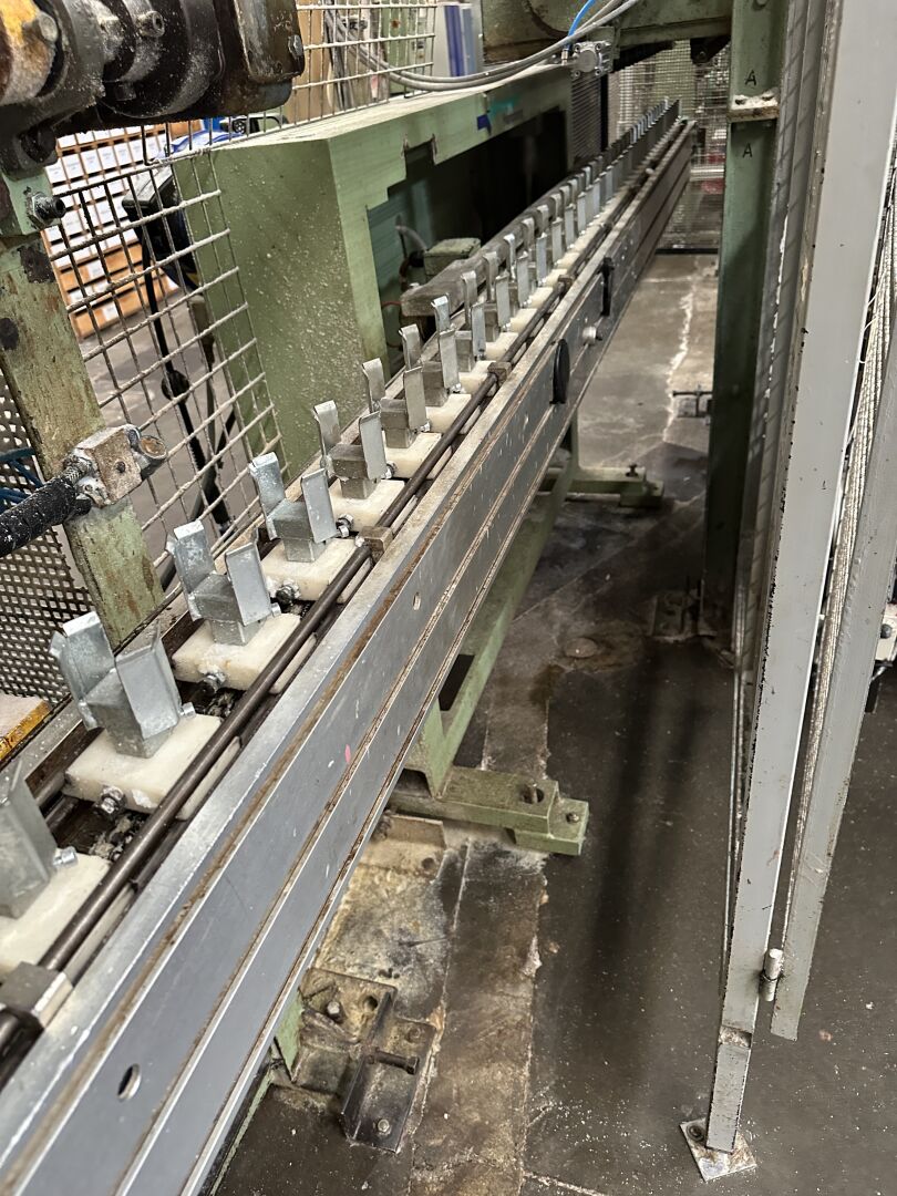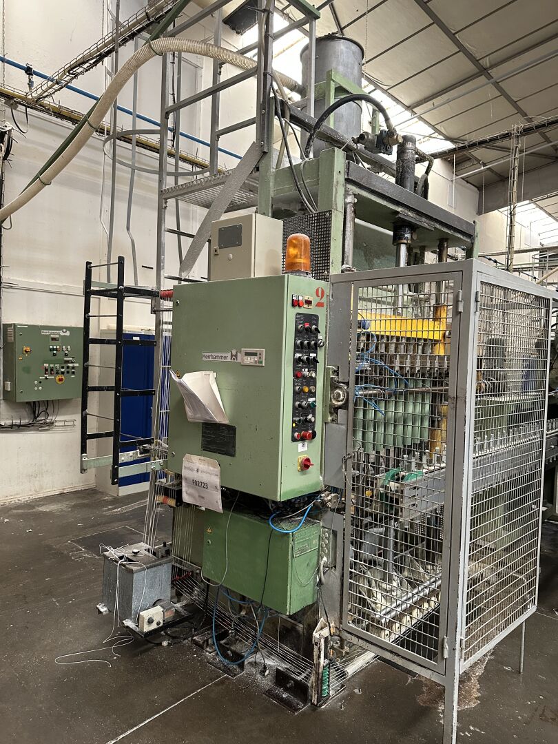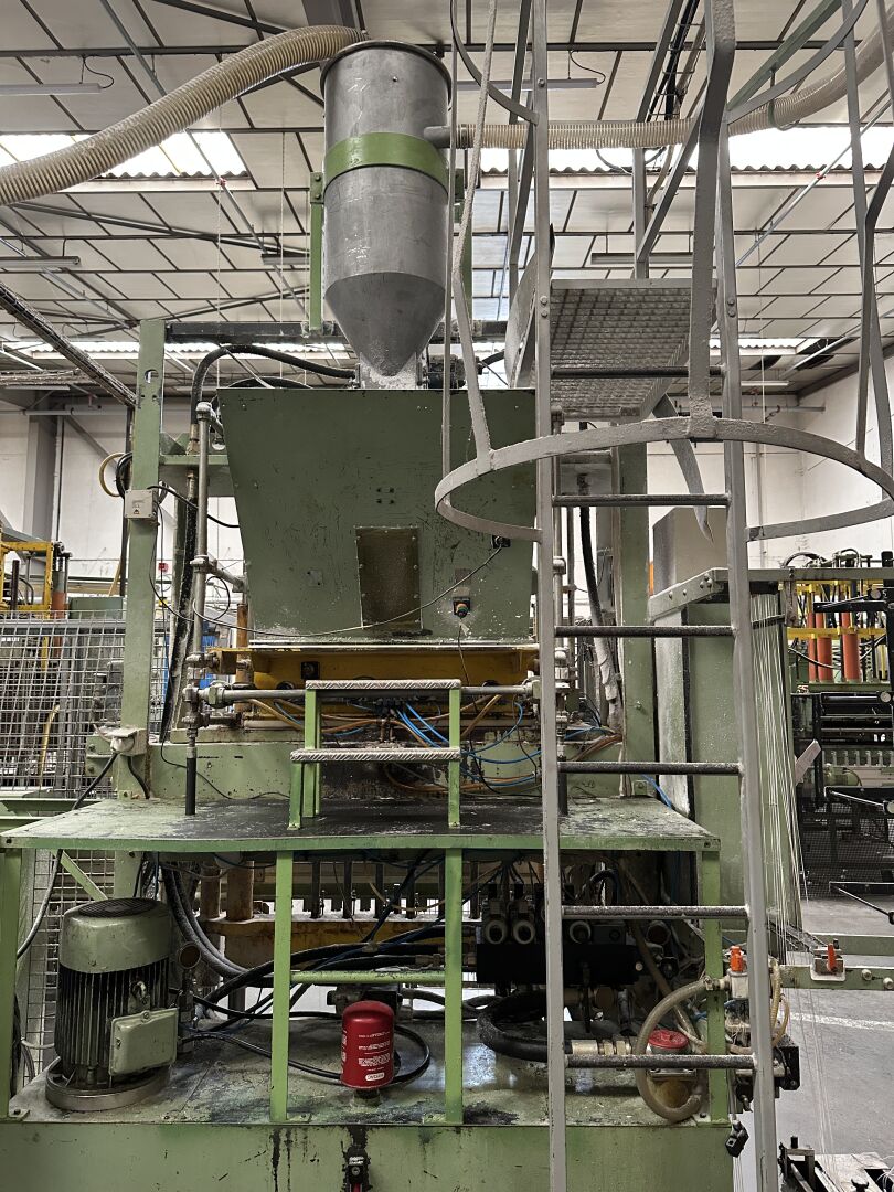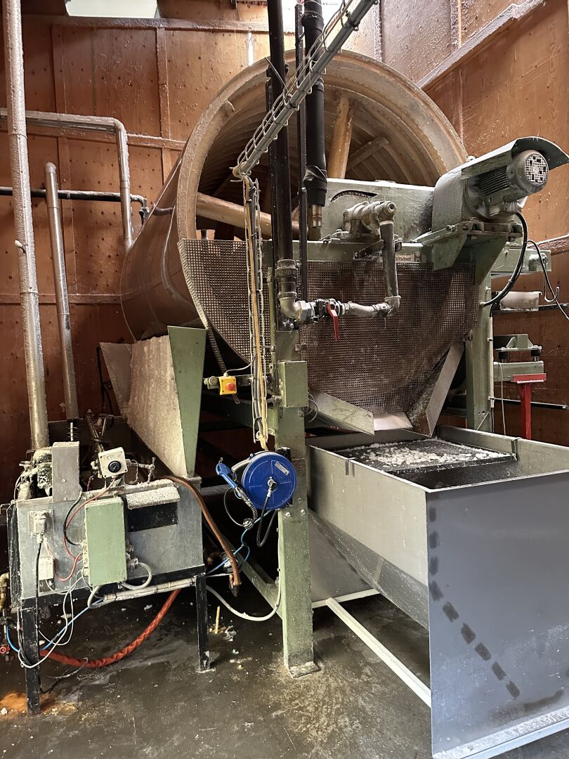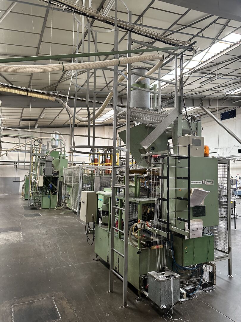 P2 : PRESSE DE FABRICATION DE BOUGIES COMPRENANT : -1 rouleau à poudre 3000 x diam 2000 mm équipé d'un bac de pulvérisation bain d'huile et d'un bac de stockage de poudre inox 1200 x 1100 x 1000 mm mobile ( dans un espace cloisonné bois à démonter) alimentant : -1 presse GUNST GMBH 22985 de 1987 rétrofitée par HERRHAMMER -8 moules diam 48 mm -module d'insertion de mèches -1 chaine à taquets longueur 450 cm -1 module de trempage FTM 19/430 253 -1 lot de moules -1 convoyeur à bande 1300 x 1500 mm (frais de mise à disposition 150 € TTC)