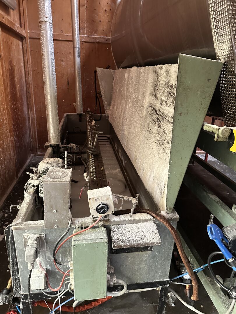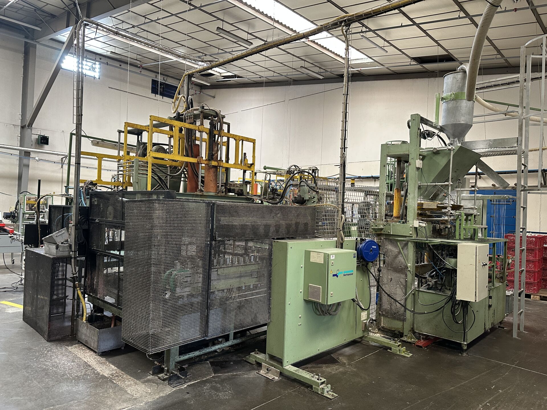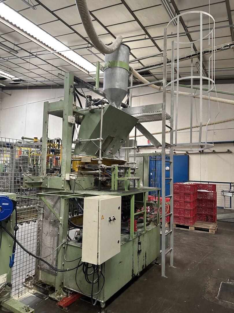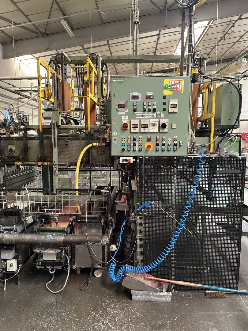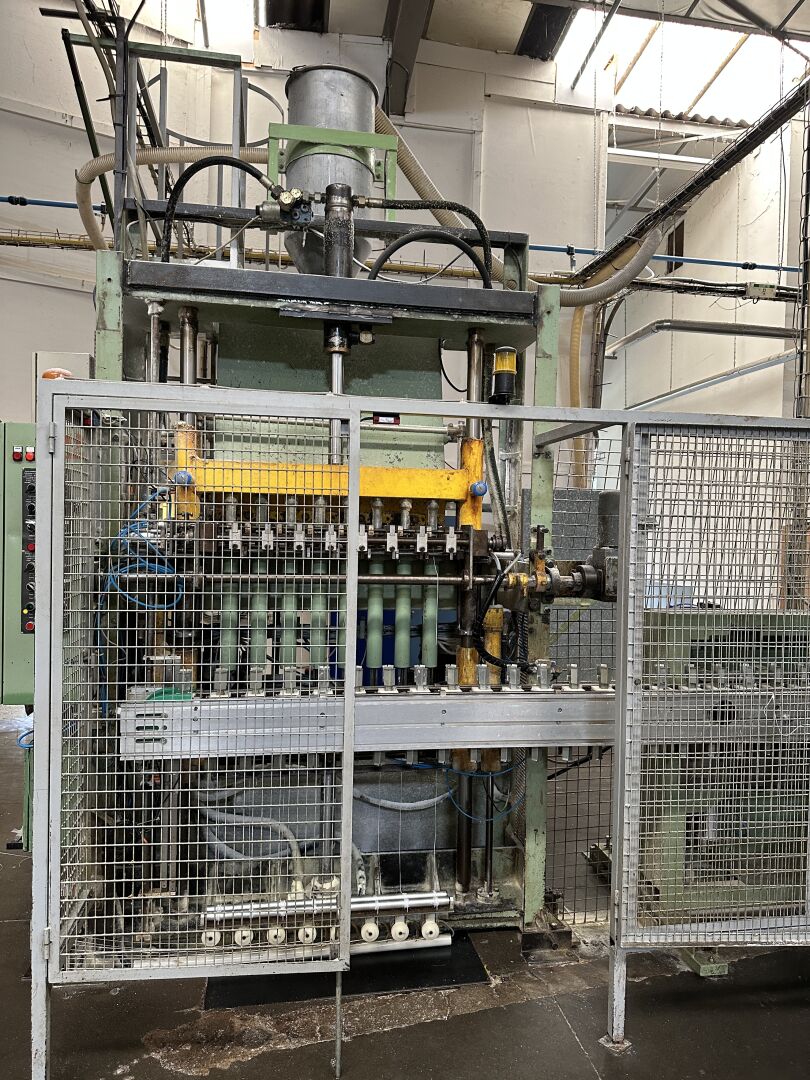 P2 : PRESSE DE FABRICATION DE BOUGIES COMPRENANT : -1 rouleau à poudre 3000 x diam 2000 mm équipé d'un bac de pulvérisation bain d'huile et d'un bac de stockage de poudre inox 1200 x 1100 x 1000 mm mobile ( dans un espace cloisonné bois à démonter) alimentant : -1 presse GUNST GMBH 22985 de 1987 rétrofitée par HERRHAMMER -8 moules diam 48 mm -module d'insertion de mèches -1 chaine à taquets longueur 450 cm -1 module de trempage FTM 19/430 253 -1 lot de moules -1 convoyeur à bande 1300 x 1500 mm (frais de mise à disposition 150 € TTC)