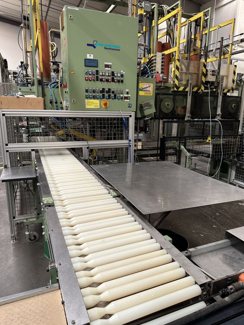 Vendu sur désignation le 04 11 2025 à 10h à NANTES, 24 rue du marché commun, visible le 03/11/2025 de 14h à 16h à GETIGNé, Enlèvement jusqu'au 19 décembre 2025 HALL 2 : P3 : PRESSE DE FABRICATION DE BOUGIES COMPRENANT : -1 rouleau à poudre diam 2000 mm , 3000 mm de longueur équipé d'un bac de pulvérisation bain d'huile et un bac de stockage inox mobile 1300 x 1200 mm,( dans un espace cloisonné bois à démonter) alimentant : -1 presse HERRHAMMER HPA 620 S8 de 1999 -8 moules diam 38 mm -1 module d'insertion de mèche -1 chaine à taquets longueur 450 cm -1 module de trempage HERRHAMMER FTM 191 1430/16 -1 convoyeur à rouleaux 4000 x 40 mm (frais de mise à disposition 200 € TTC)