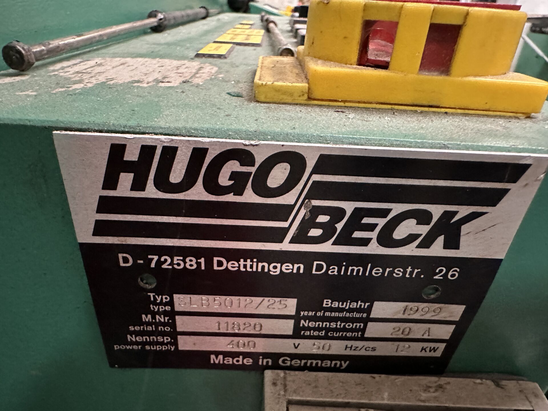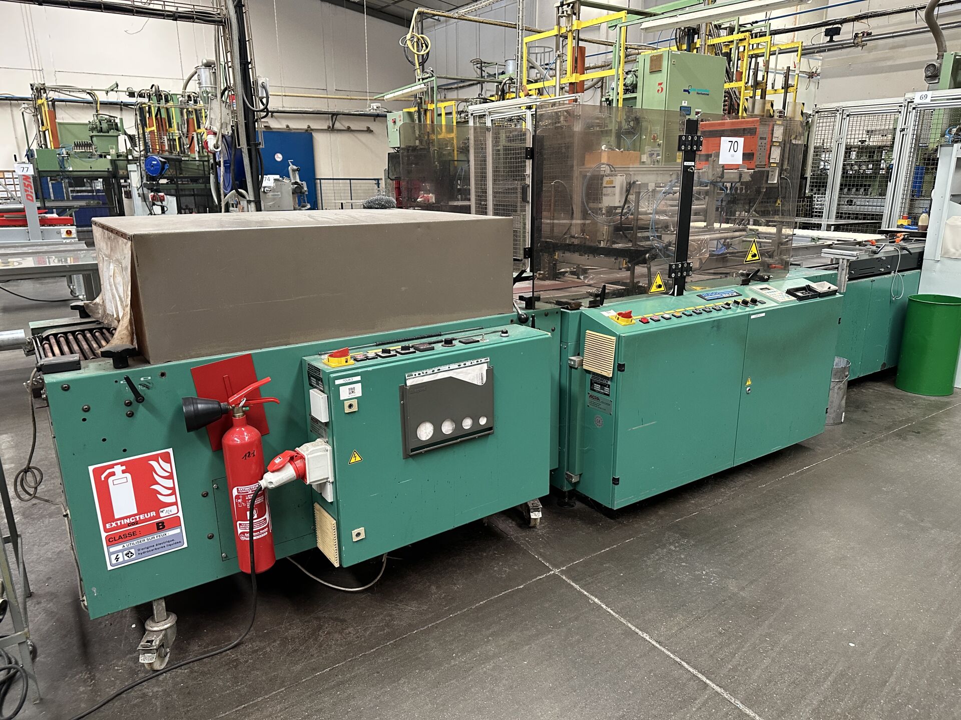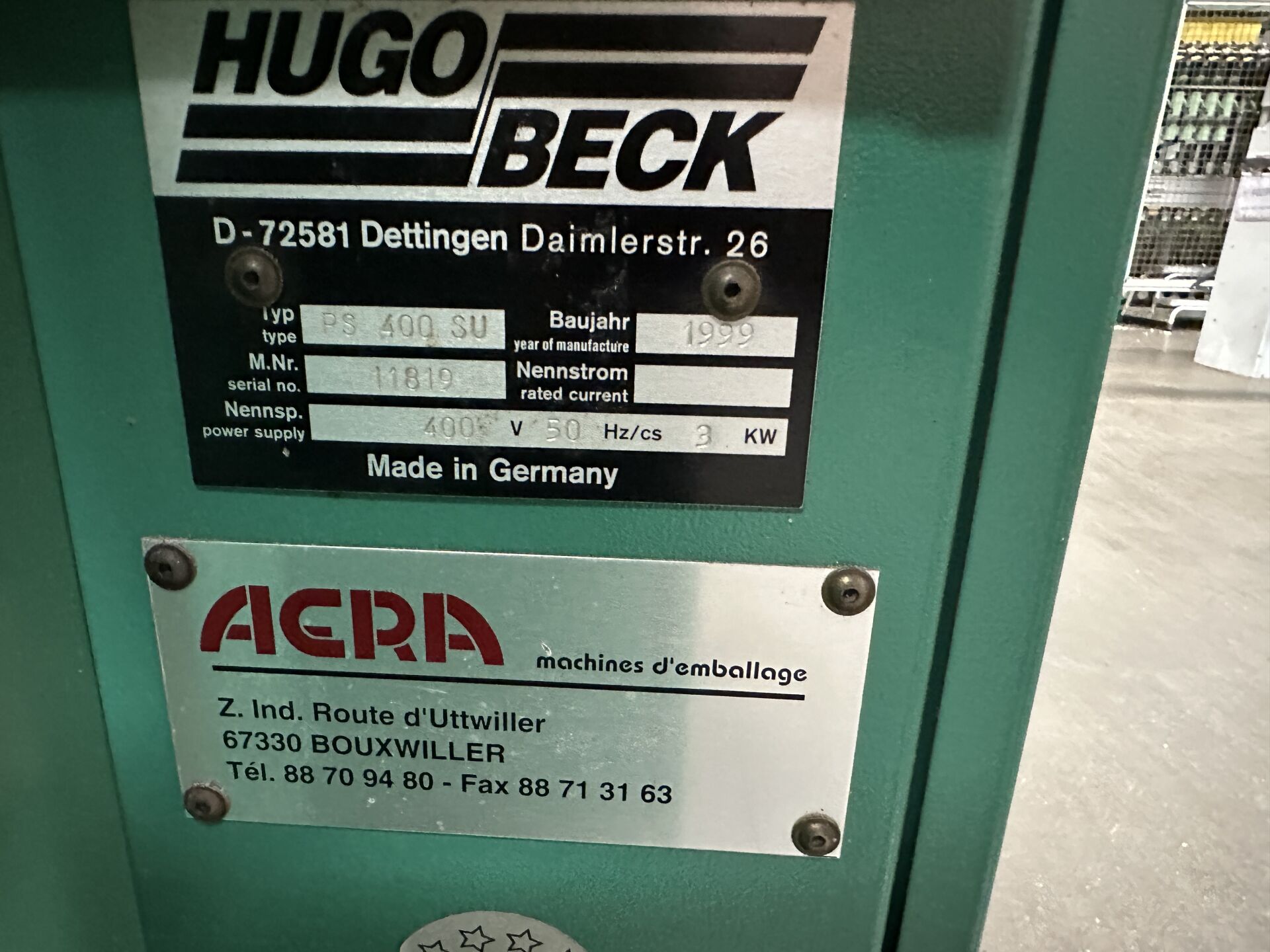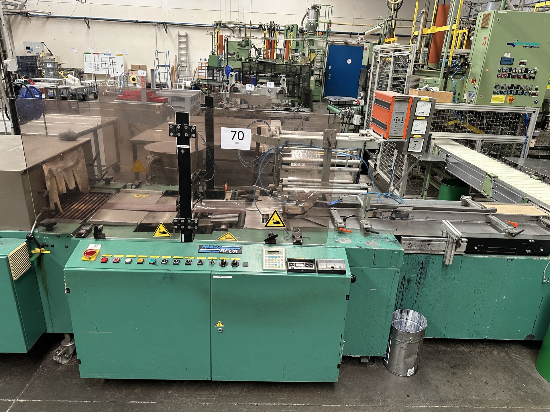 -1 filmeuse HUGOBECK PS 400 SU 450 x 140 cm -1 four HUGOBECK de rétractation SLB 5012/25 de 1999 170 x 120 cm (frais de mise à disposition 10 € TTC)