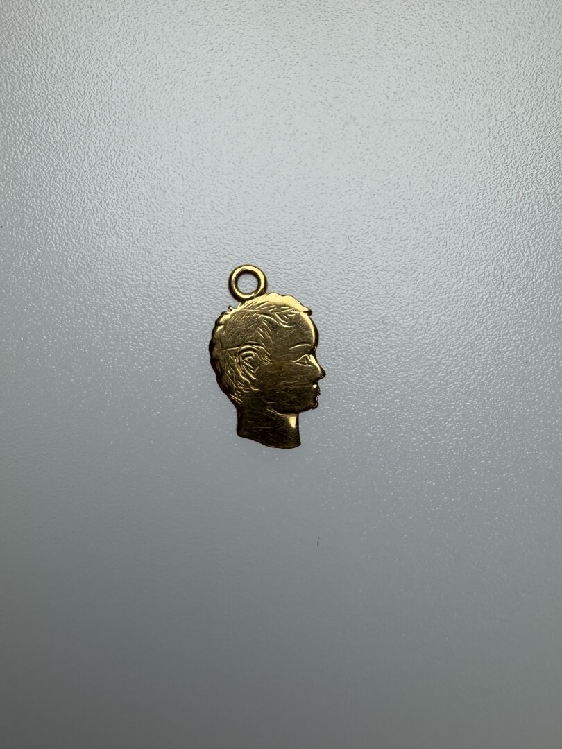 Pendentif figurant le visage d'un enfant de profil en or jaune 18k (750 millièmes). Poids : 1,21 gr