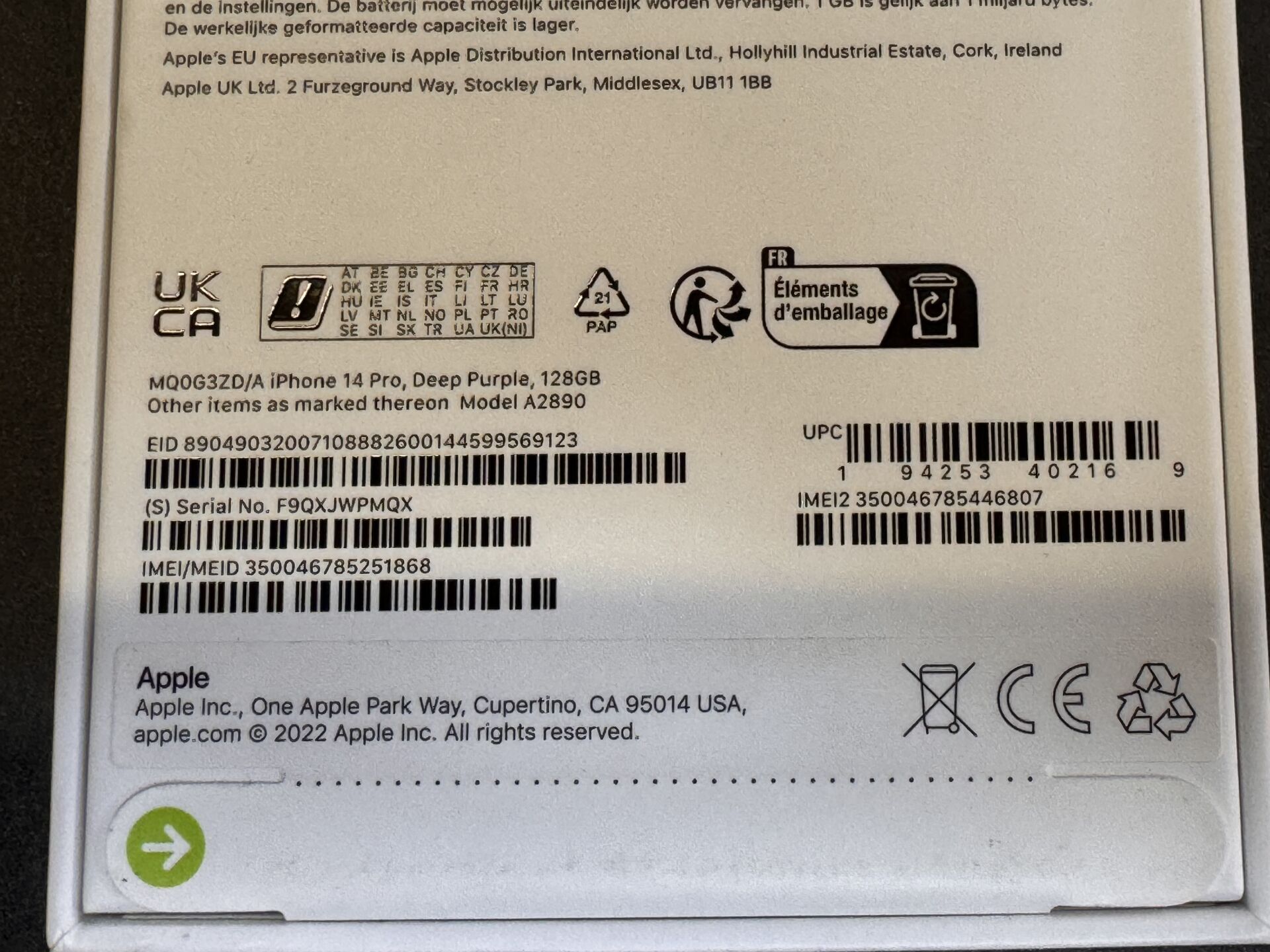 APPLE iPhone 14 PRO 128 GB Deep Purple N/S : F9QXJWPMQX