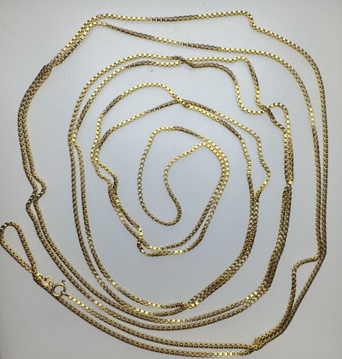 Longue chaine en or jaune 18k (750 millièmes), maille vénitienne. Poids : 61,68 gr - Long. : 262 cm