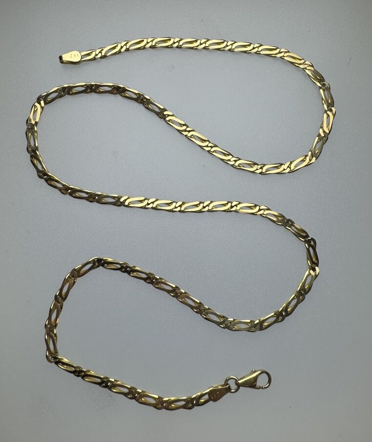 Chaine en or jaune 14k (585 millièmes), maille escargot. Poids : 21,62 gr - Long. : 54 cm