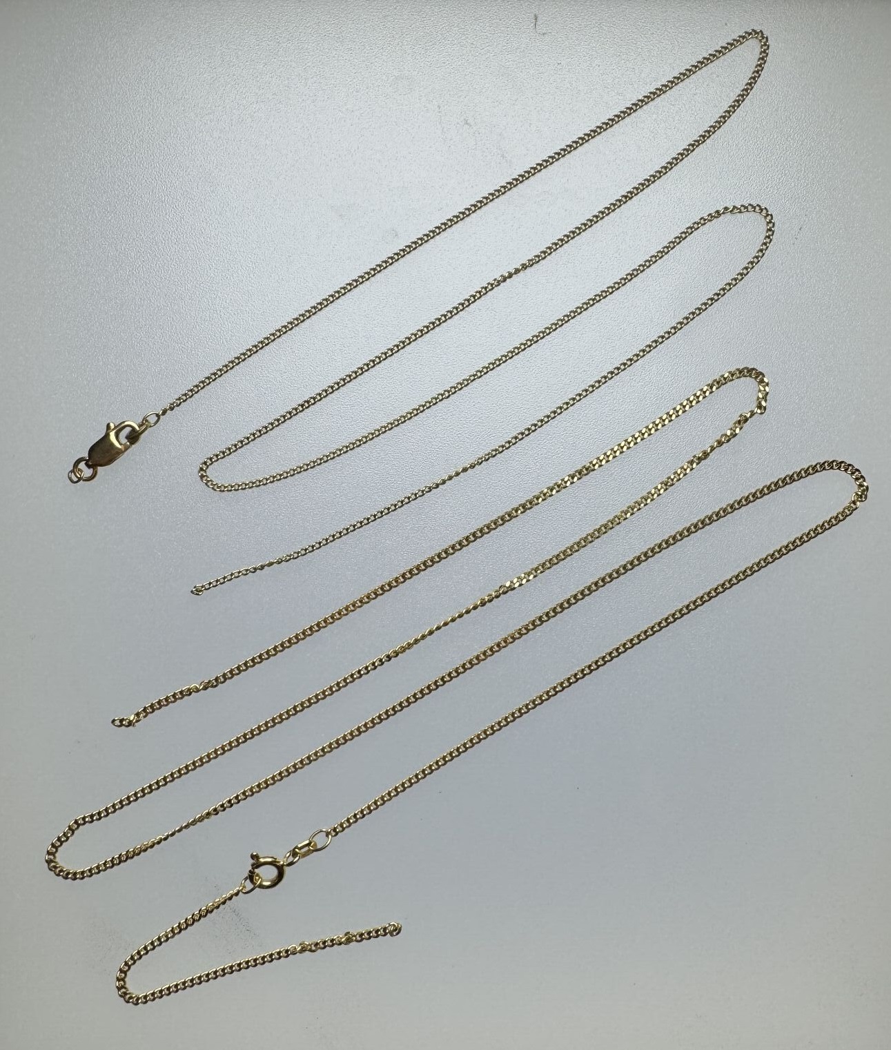 Lot de deux chaines en or jaune 14k (585 millièmes). Poids : 9 gr (chaines cassées)