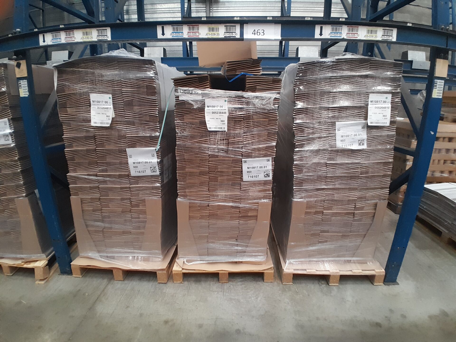 Dans l'allée J03 sur 3 palettes un lot d'environ 2880 cartons de même dimension 390X128X164 MM (frais de mise à disposition 30 € TTC)