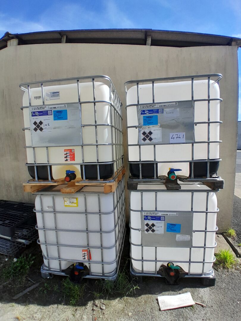 1 ensemble de 4 cuves en plastique encagées capacité 1000 litres (frais de mise à disposition 10 € TTC)