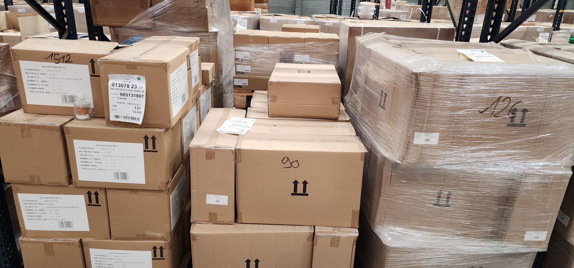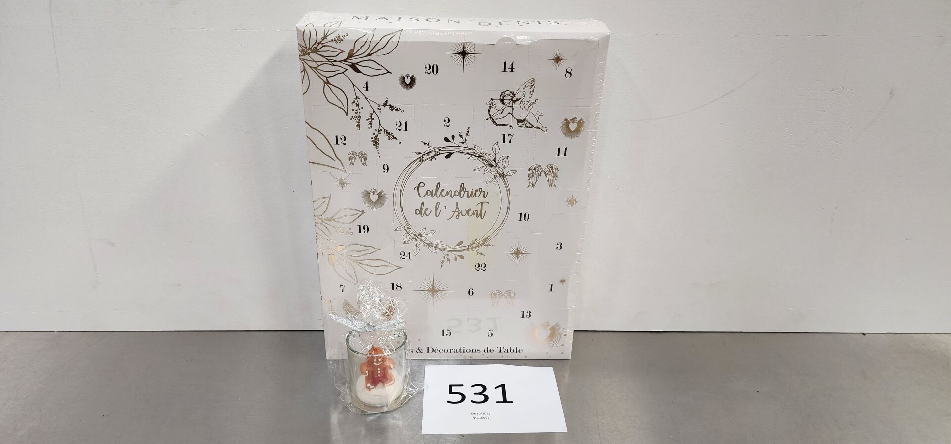 Dans l'allée E, sur 6 palettes un lot d'environ 2106 bougies et calendrier (fêtes de fin d'année) dont cinq palettes d'environ 594 calendriers de l'avent, environ 1512 bougies pain d'épice dans un verre (frais de mise à disposition 30 € TTC)