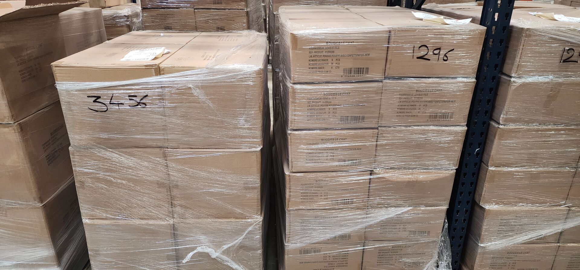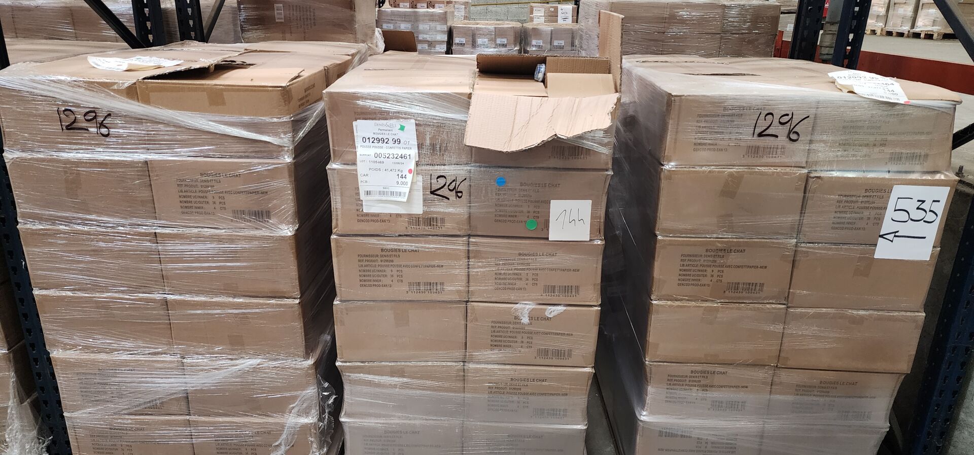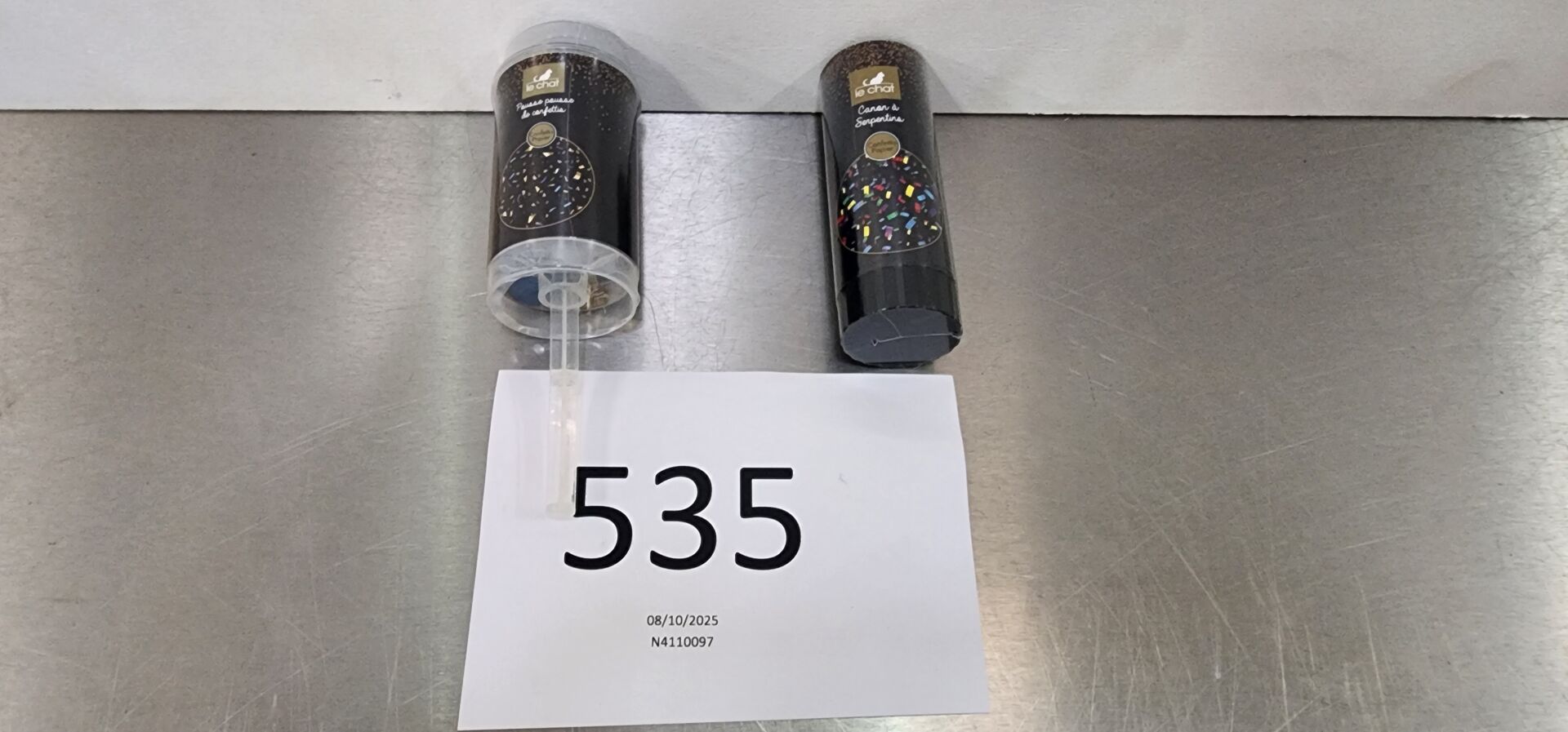 Dans l'allée D, sur 7 palettes un lot d'environ 15552 confettis : trois palettes d'environ 10368 canons à confettis H110, quatre palettes d'environ 5184 pousse-pousseS confettis papier. (frais de mise à disposition 30 € TTC)