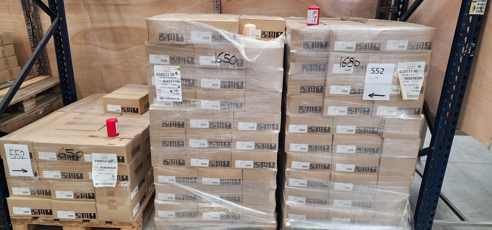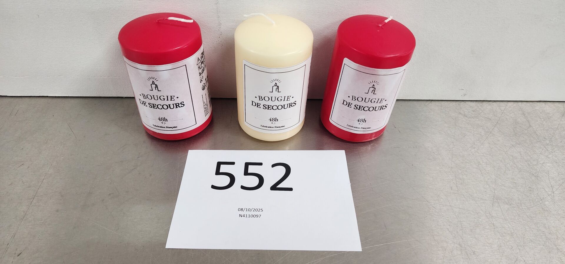 Sur 3 palettes un lot d'environ 3980 bougies cylindriques assorties. (frais de mise à disposition 30 € TTC)