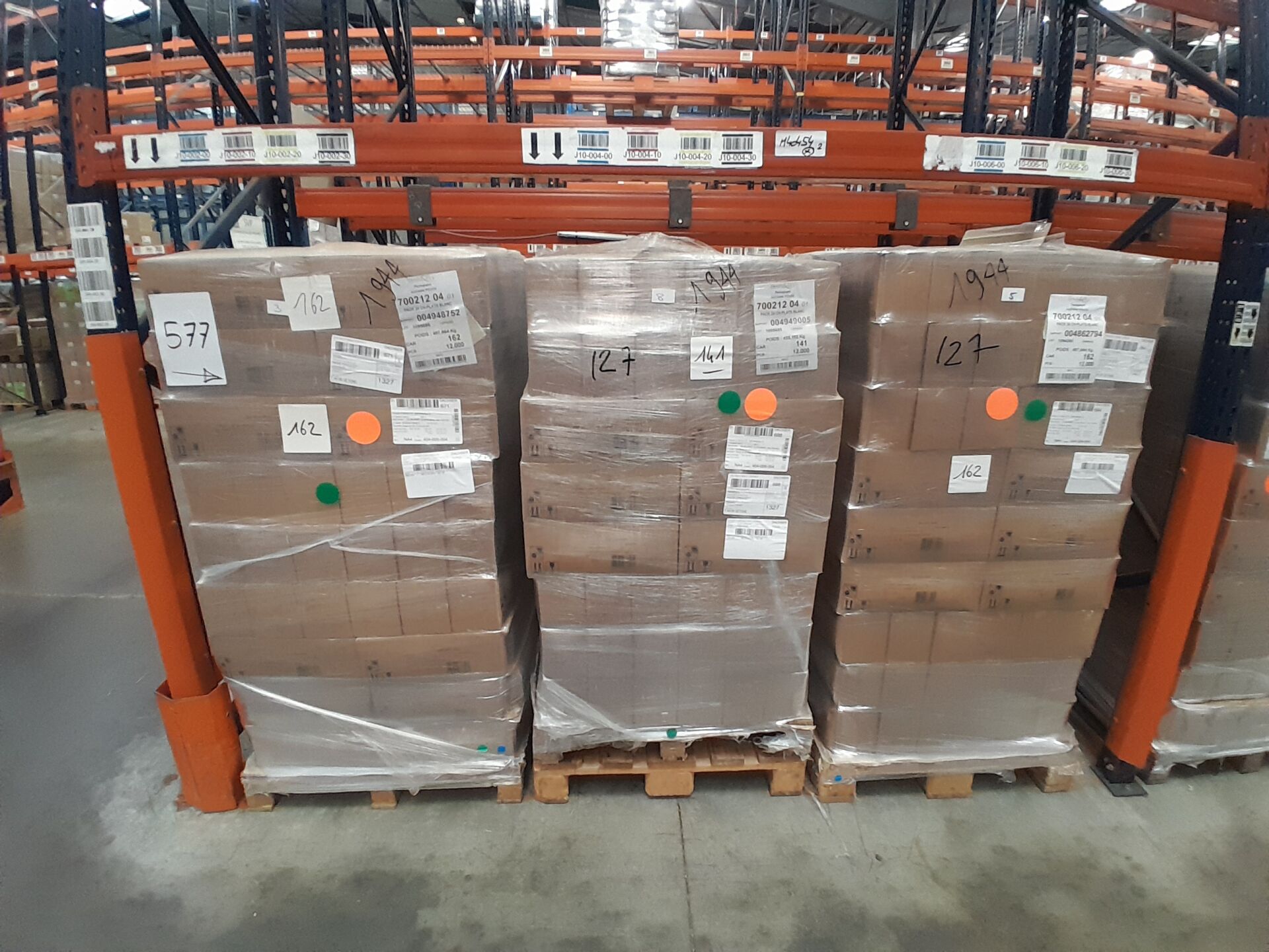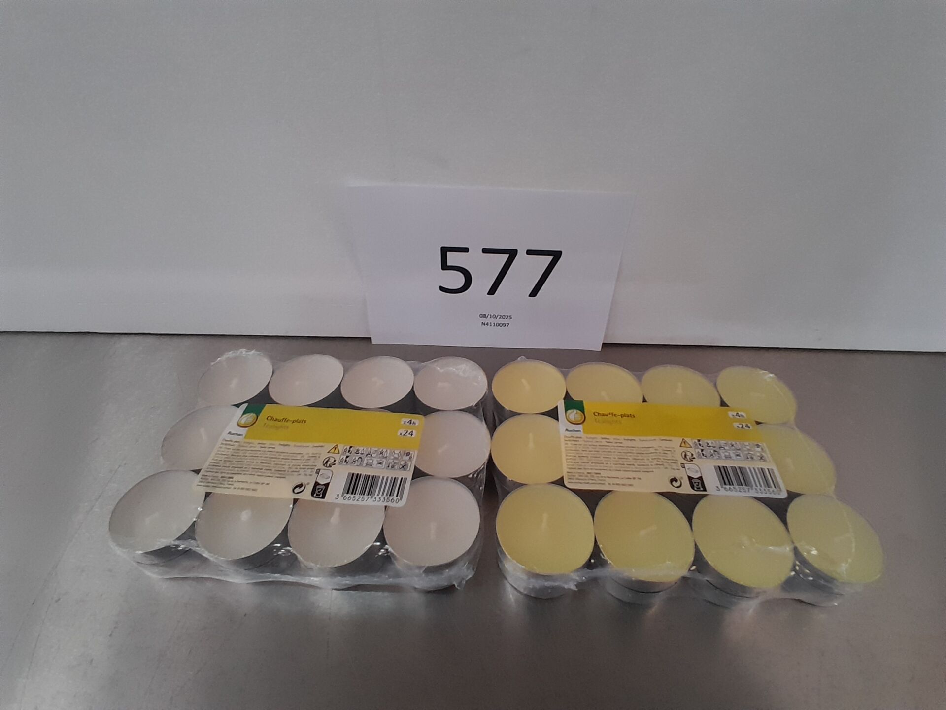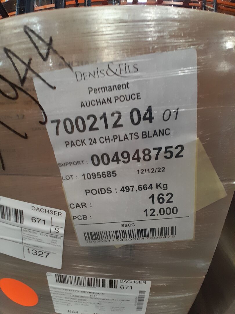 Dans l'allée J10, sur 6 palettes un lot d'environ 11664 packs de vingt-quatre chauffe-plats blanc. (frais de mise à disposition 30 € TTC)