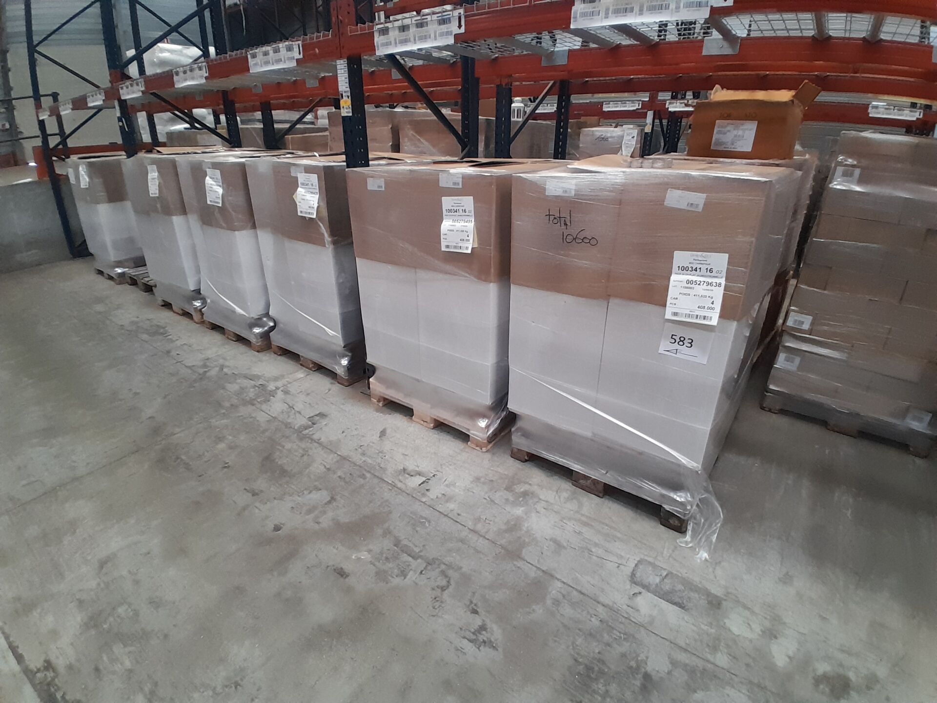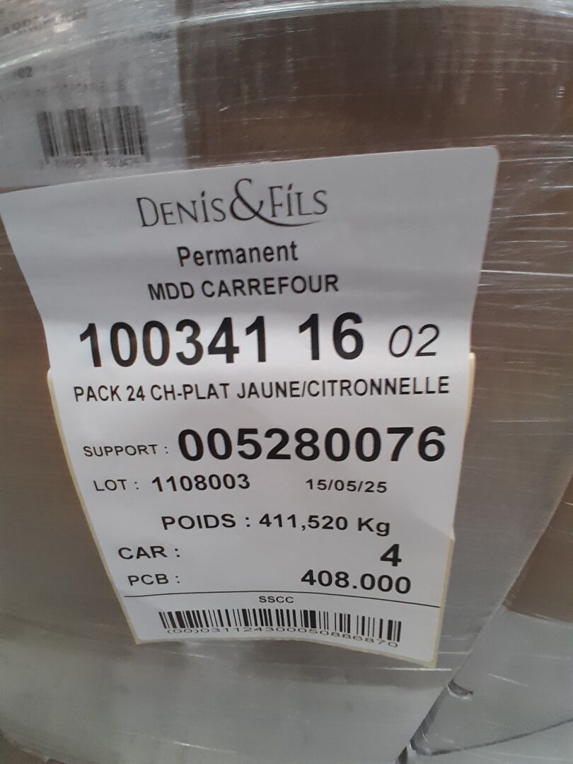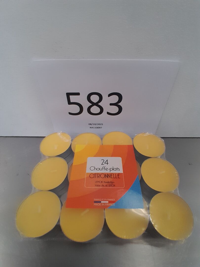 Dans l'allée F, sur 7 palettes un lot d'environ 10600 packs de 24 chauffe-plats jaune/citronnelle (frais de mise à disposition 30 € TTC)