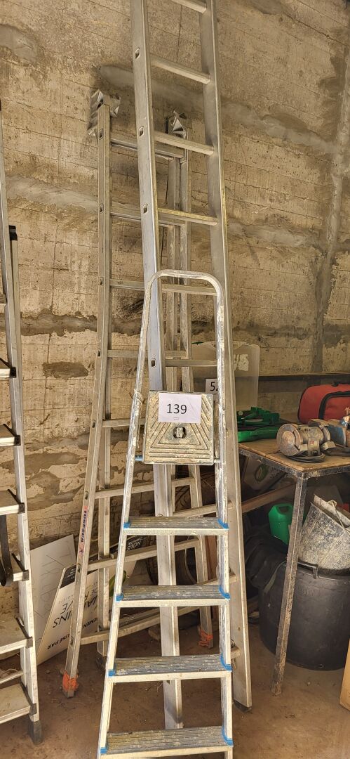 1 escabeau métal 5 marches 1 échelle alu 12 marches 1 échelle alu coulissante 2x8 marches TUBESCA