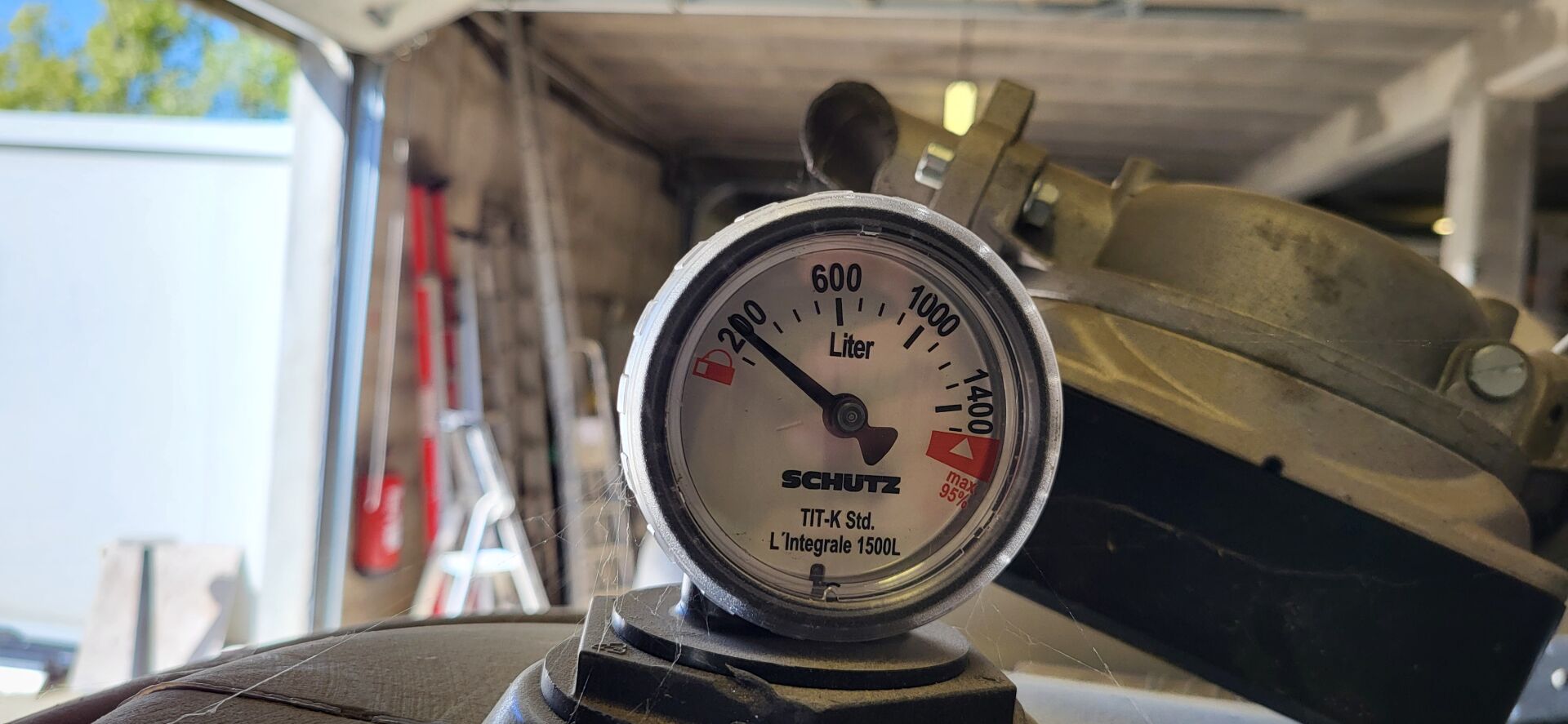 1 cuve de stockage PVC double parois SCHUTZ 1500L, avec pompe et volucompteur (vide)