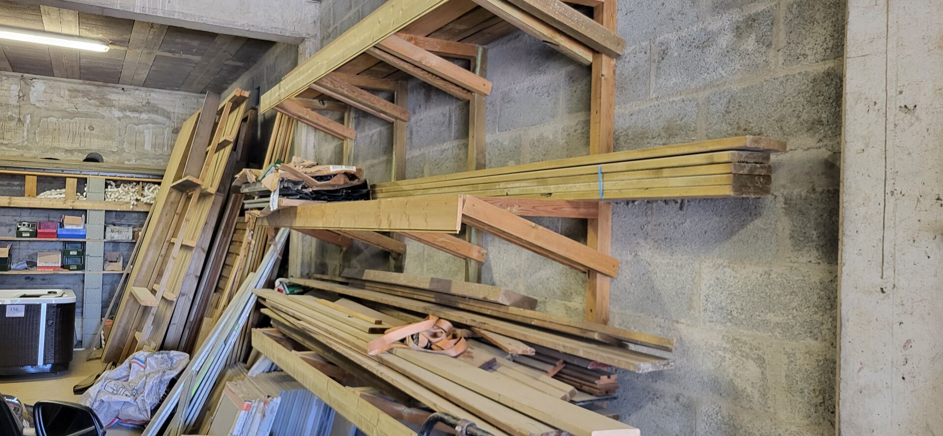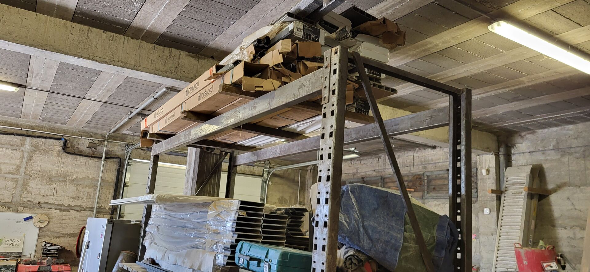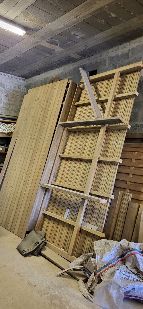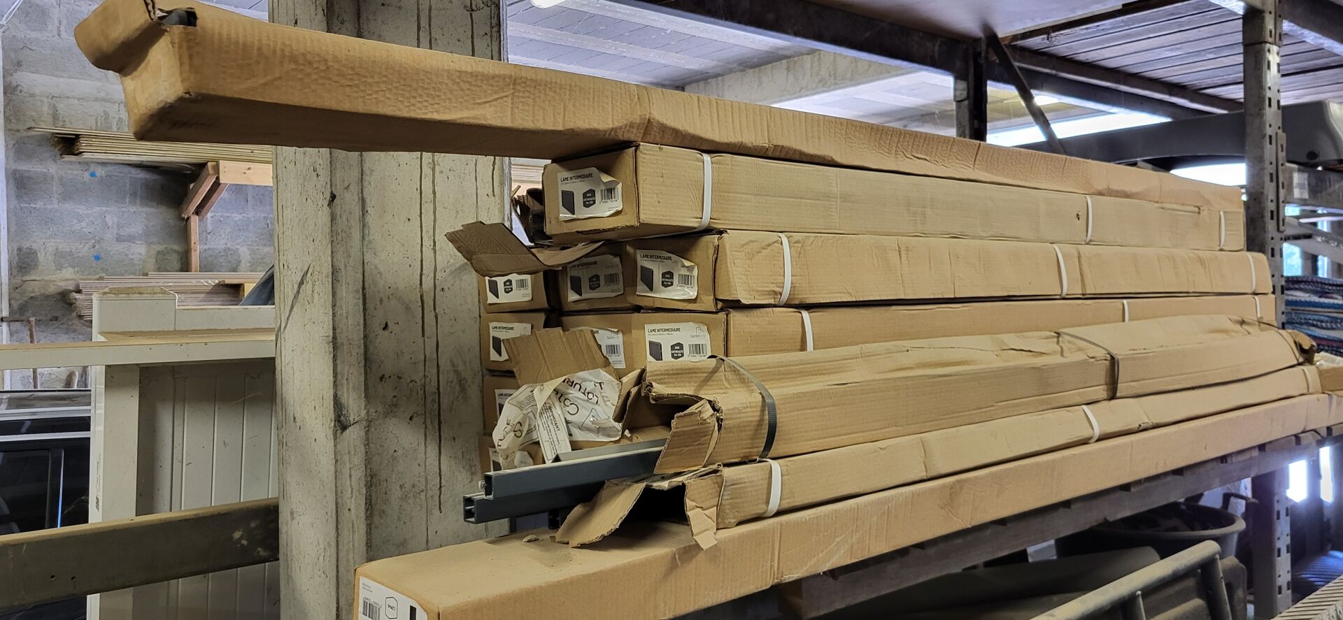 Répartis dans les locaux : 1 stock comprenant : panneaux de bois, lames en bois, portails PVC blancs ou alu verts, environ 13 cartons de lames intermédiaires gris anthracite GARDENODE, poteaux bois, environ 15 sacs de ciment gris de 35 kg FACILI CIM