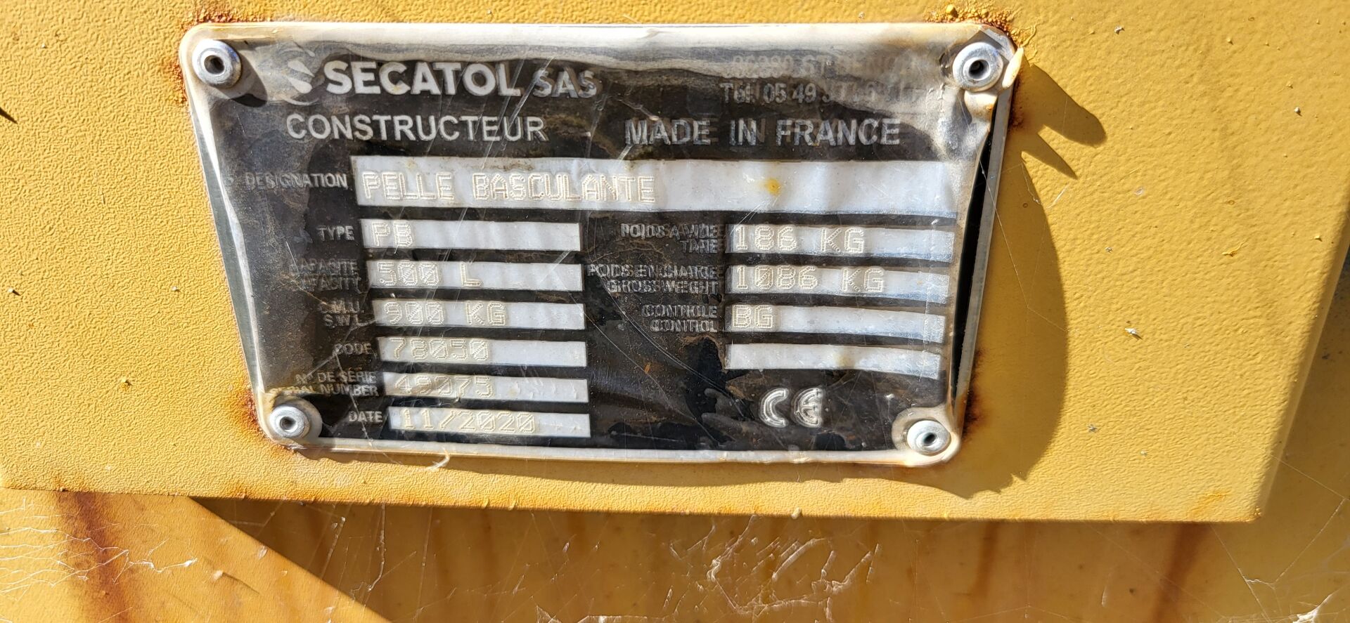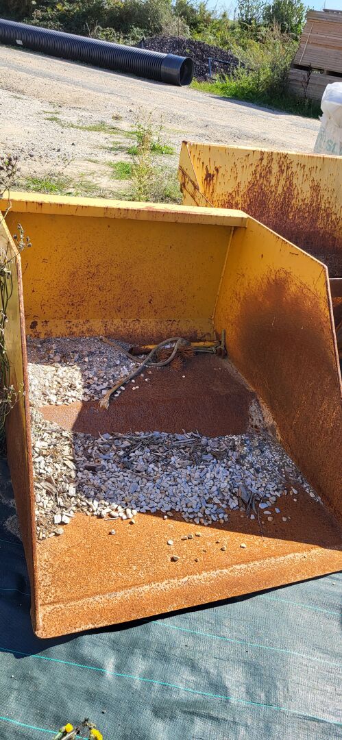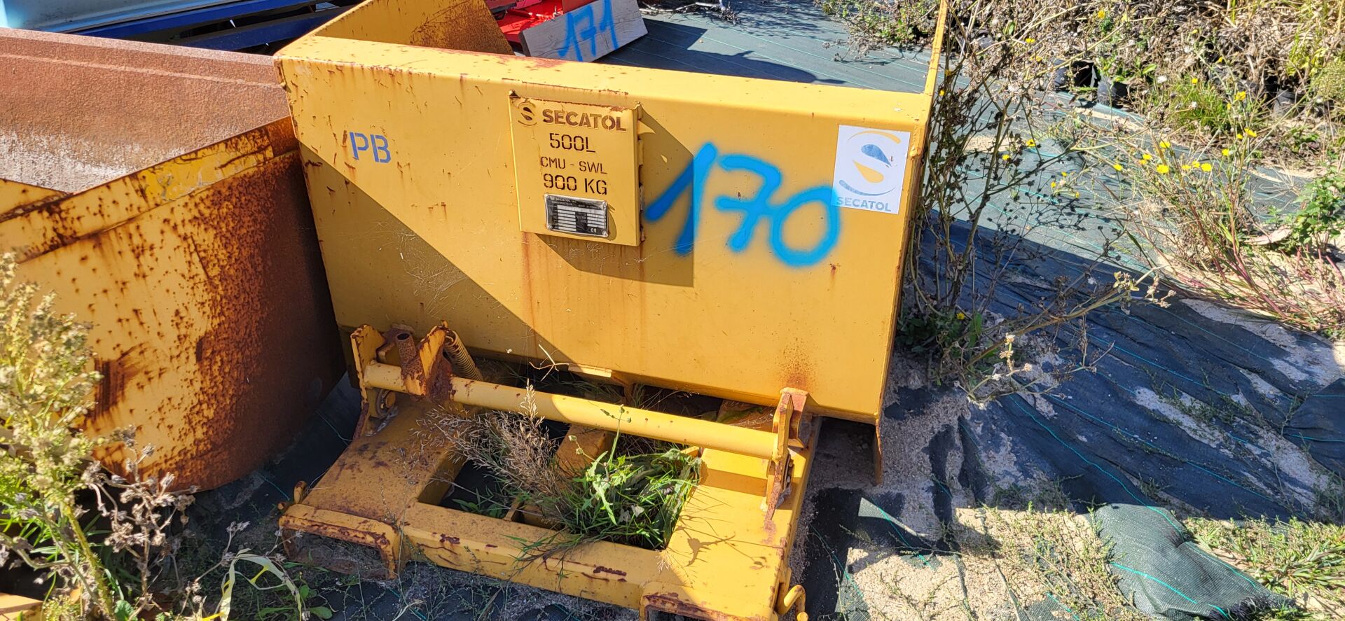 1 benne basculante prise fourche SECATOL 500L / 900kg métal jaune