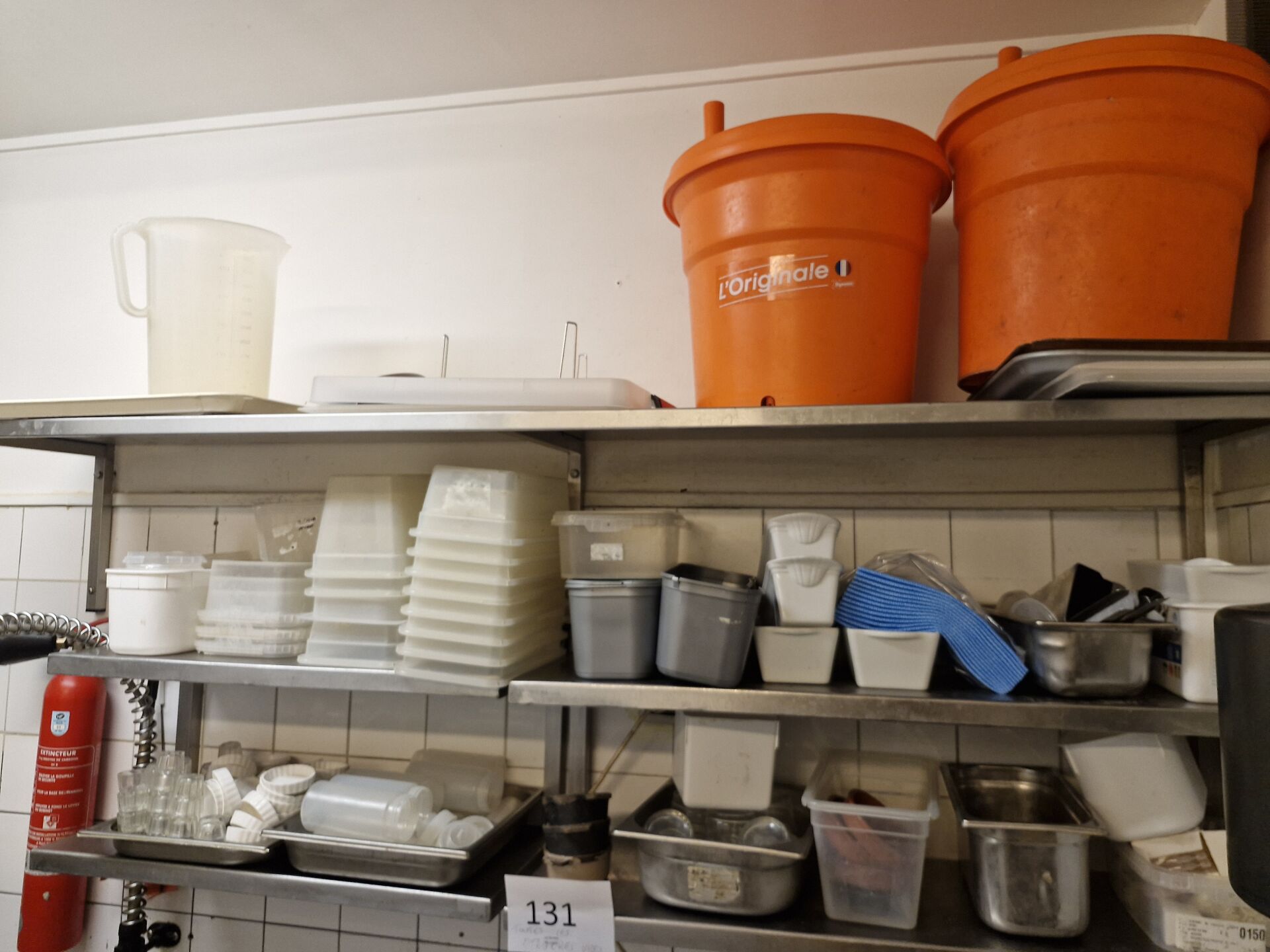 Vendu sur désignation le 14 10 2025 à 14H30 à NANTES (Centre) Visible le 14 10 25 de 13h à 13h30 à Nantes (Centre) Enlèvement le 21 10 2025 de 9h à 17h - Frais mise à disposition 10 € TTC par lot 1 chariot mobile inox 3 niveaux, 85x53cm 1 lot d'ustensiles de cuisine dont casseroles, faitouts, bacs gastro inox de différentes dimensions, (environ 50) , poêles , bacs PVC, etc 2 essoreuses L'ORIGINALE