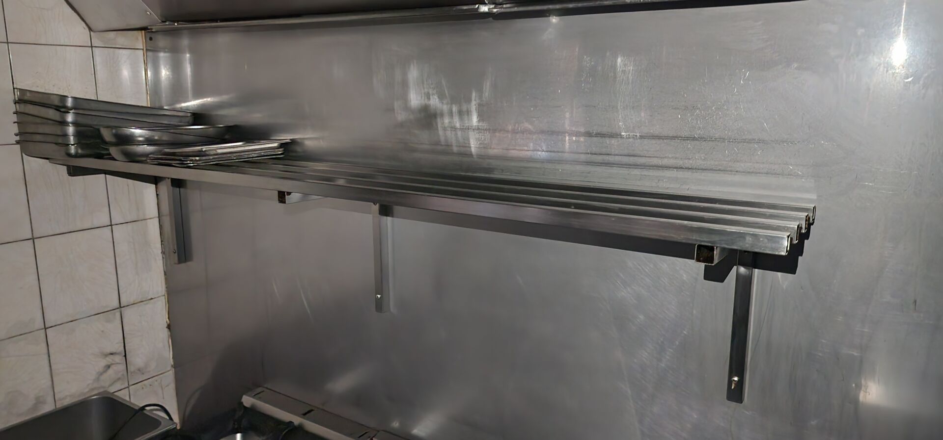 1 étagère murale inox, 172x30cm 2 étagères murales inox, 200x30cm 2 étagères murales inox, 150x30cm 1 étagère murale inox, 179x29cm 1 étagère murale inox 100x30cm
