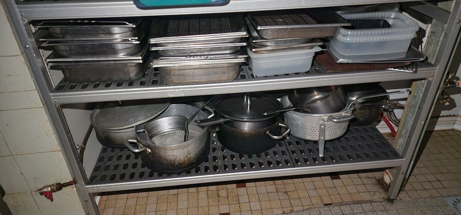 1 lot d'ustensiles de cuisine comprenant bacs gastro, casseroles, bacs plastiqueetc... 1 essoreuse L'ORIGINALE 1 poubelle PVC blanc