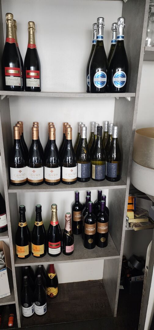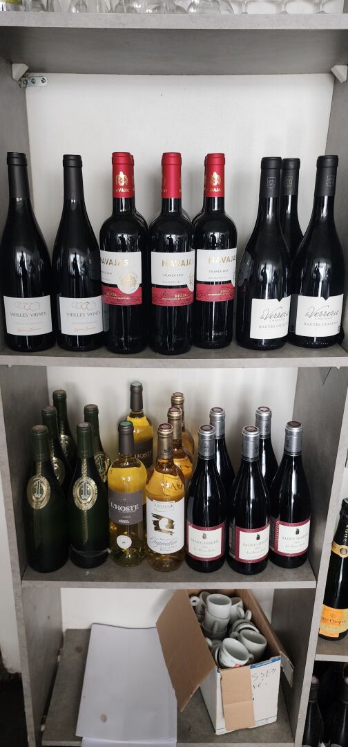 1 lot de boissons alcoolisées d'environ 80 bouteilles de vin : Champagne, et quelques bouteilles entamées