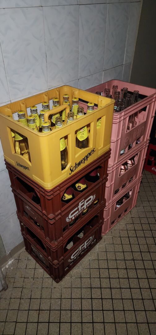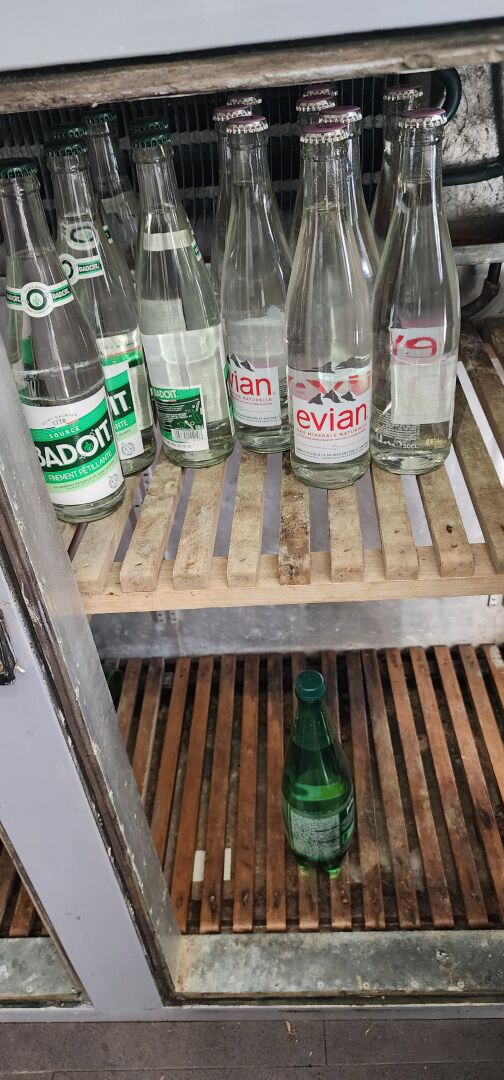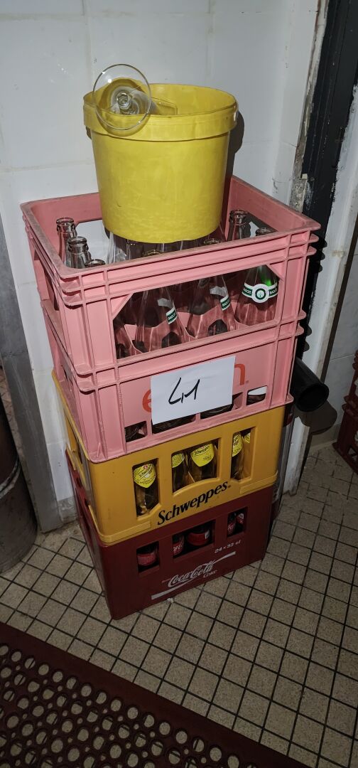 1 lot de boissons non alcoolisées d'environ 160 bouteilles d'eau, Coca Cola, Schweppes, Fuzetea, Pago, Granini etc... le contenu d'une réserve
