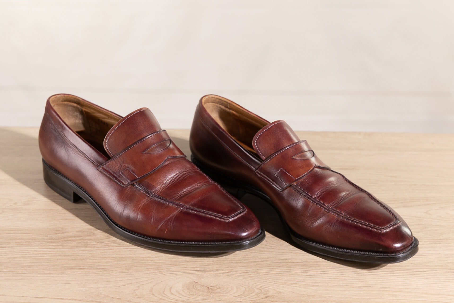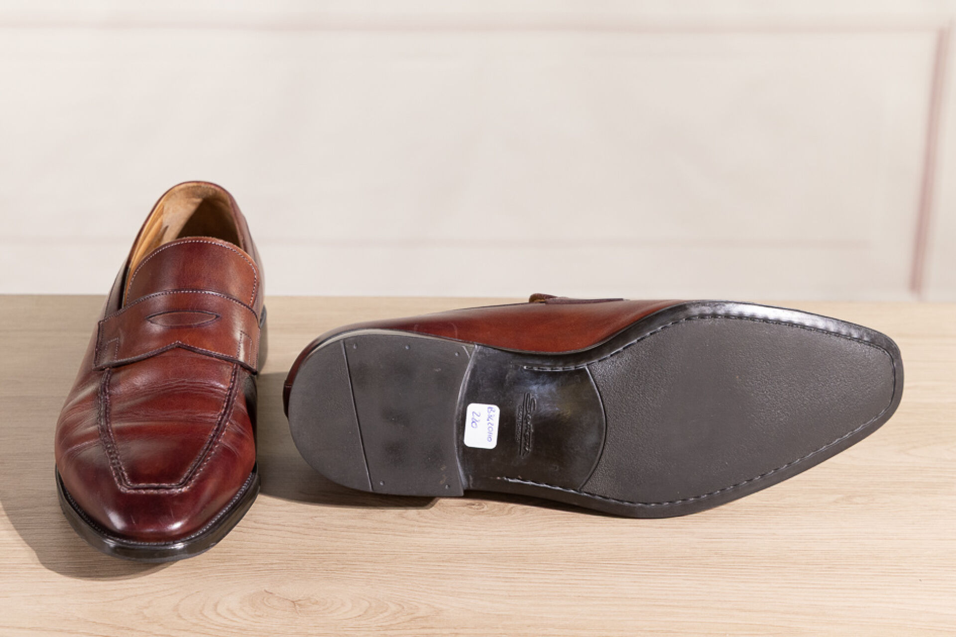SANTONI - Paire de mocassins Homme en cuir marron. Pointure 8,5 (très bon état)