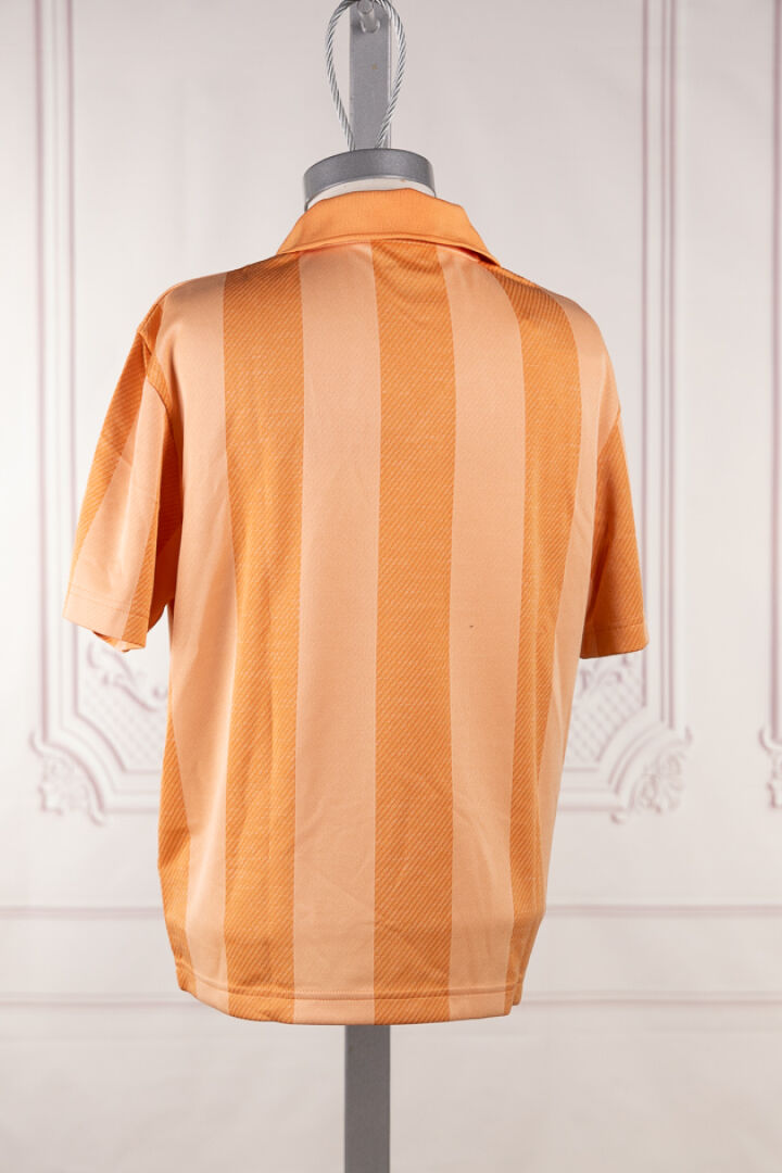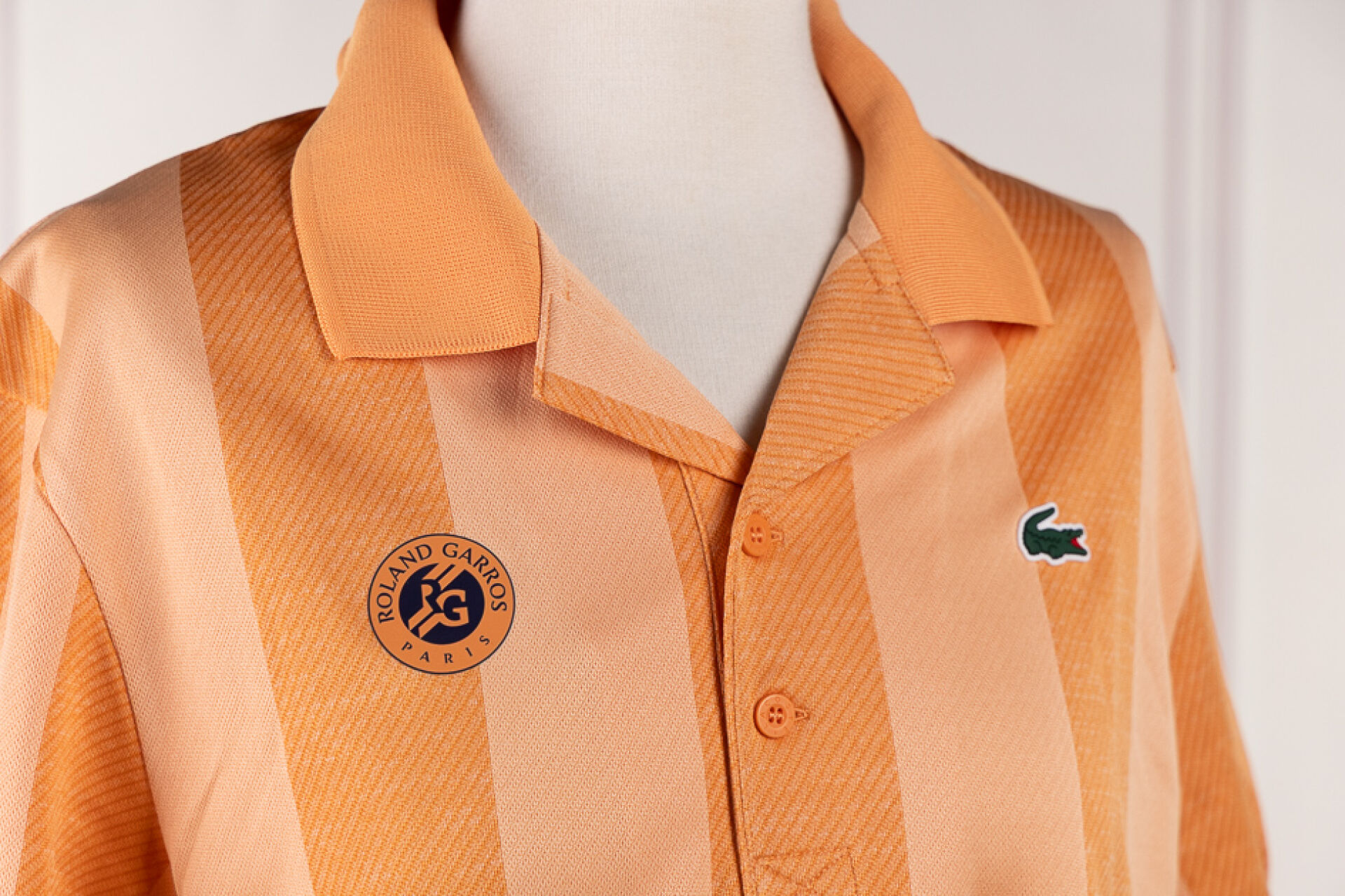LACOSTE ROLLAND GARROS. Polo unisexe rayé orange à manches courtes. Taille indiquée XS. Non porté étiquette d'origine.