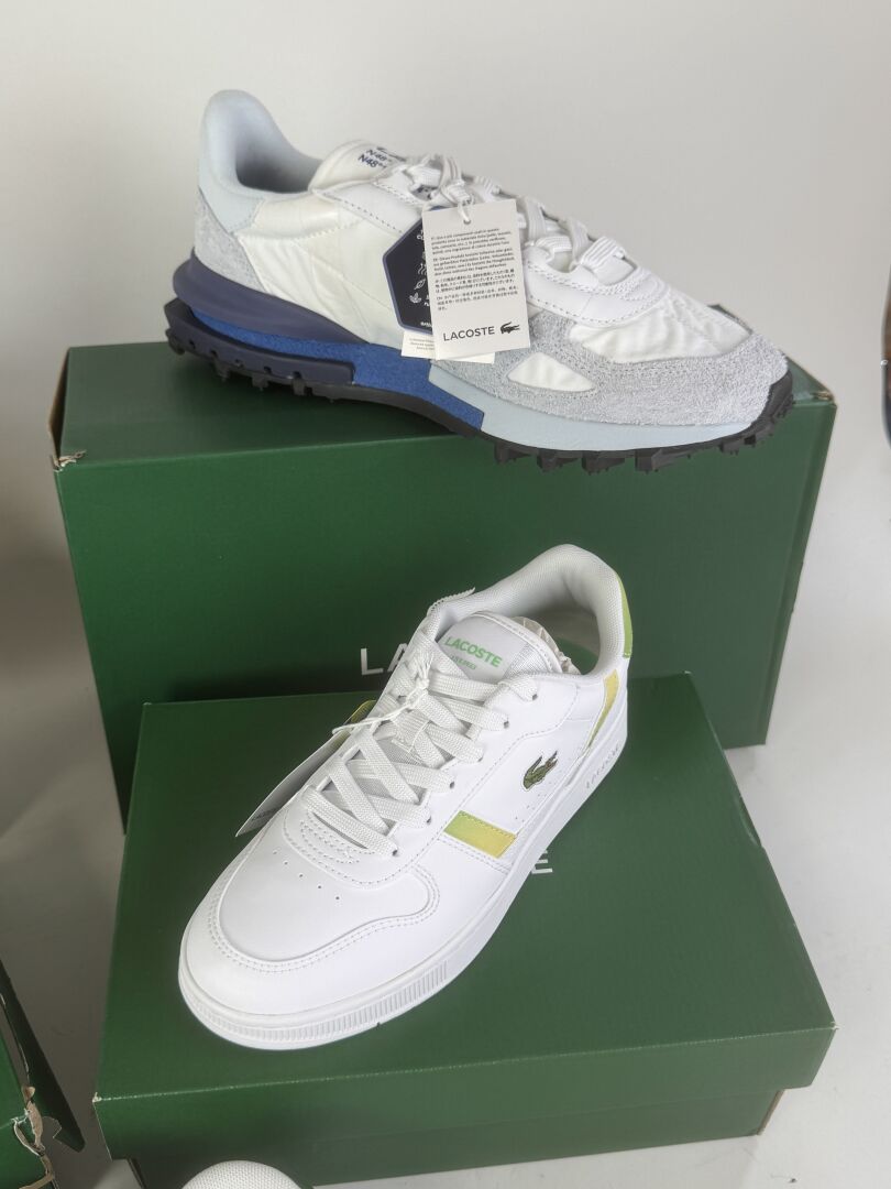 LACOSTE - Ensemble de cinq paires de baskets. Pointures 34,5, 37, 39 et 44 (Très bon état, un paire sans boite)
