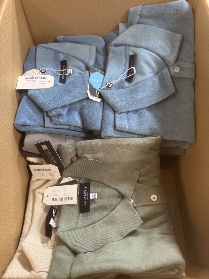MR MARVIS - Fort ensemble d'environ 20 vêtements pour homme dont polo, pantalon, short, bermuda,… Diverses tailles