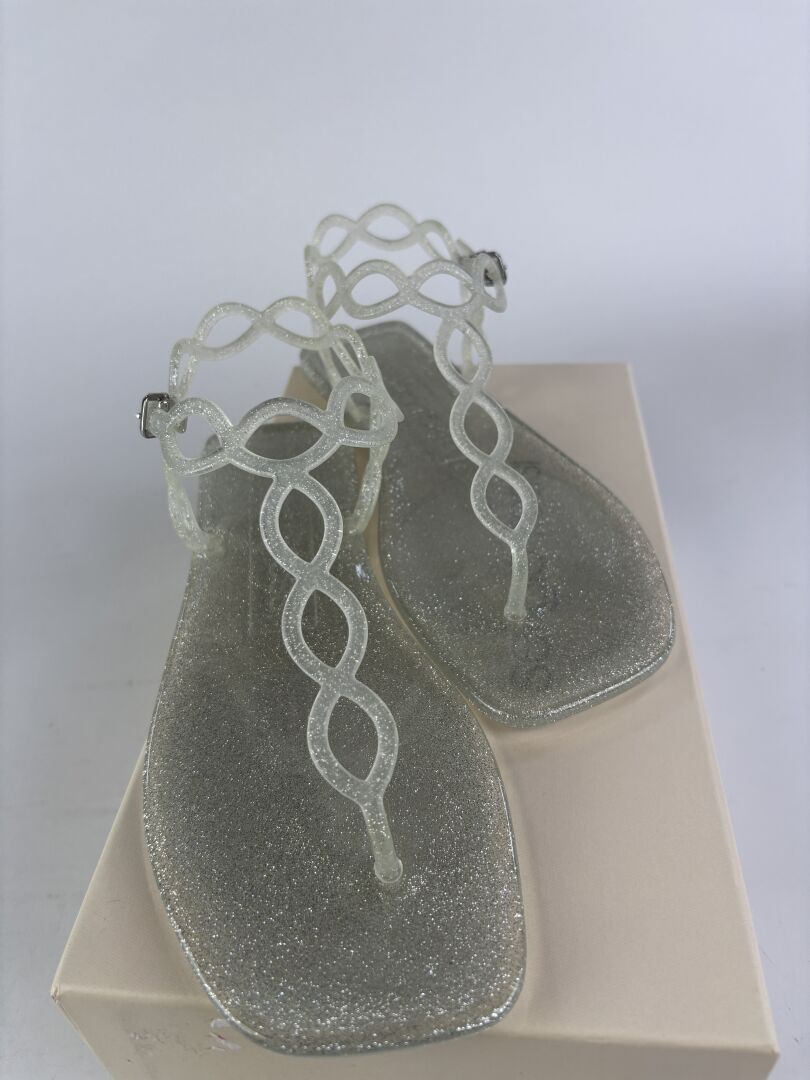 SERGIO ROSSI - Paire de sandales en plastique transparent pailleté. Pointure 38 (très bon état)