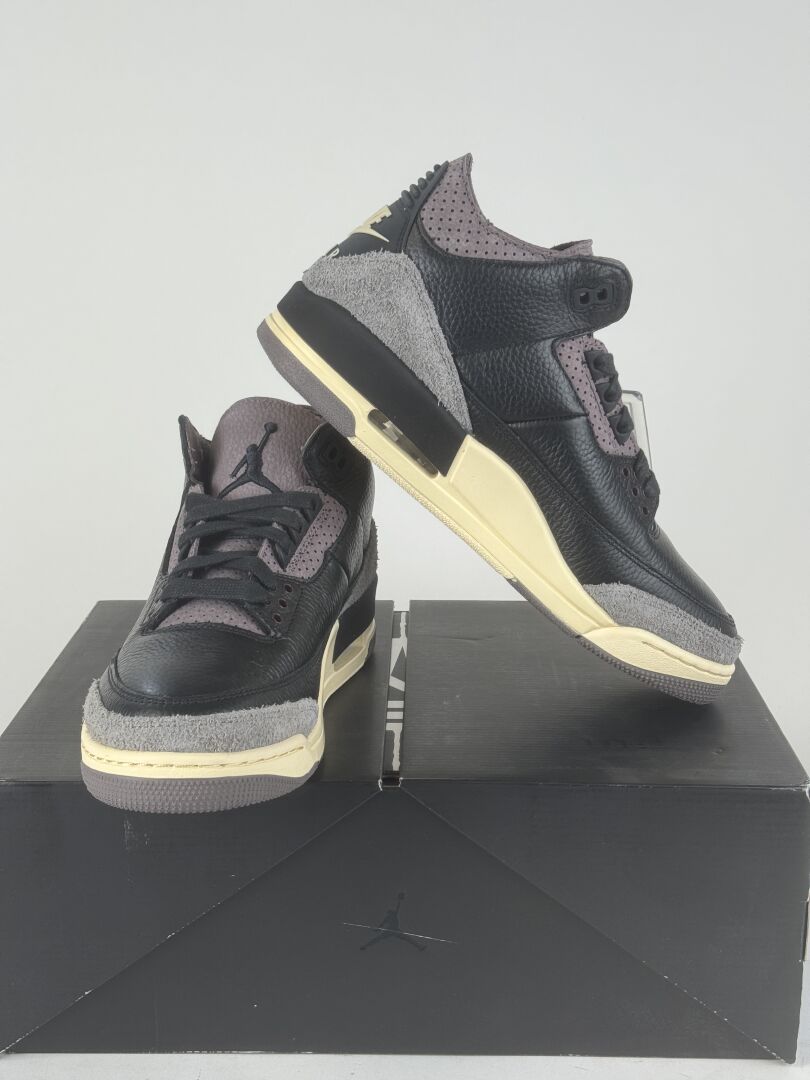 NIKE AIR JORDAN 3 RETRO - Paire de baskets noires et violettes, paire de lacets de rechange. Pointure 41 (dans leur boite - Bel état)