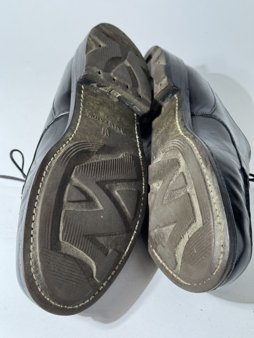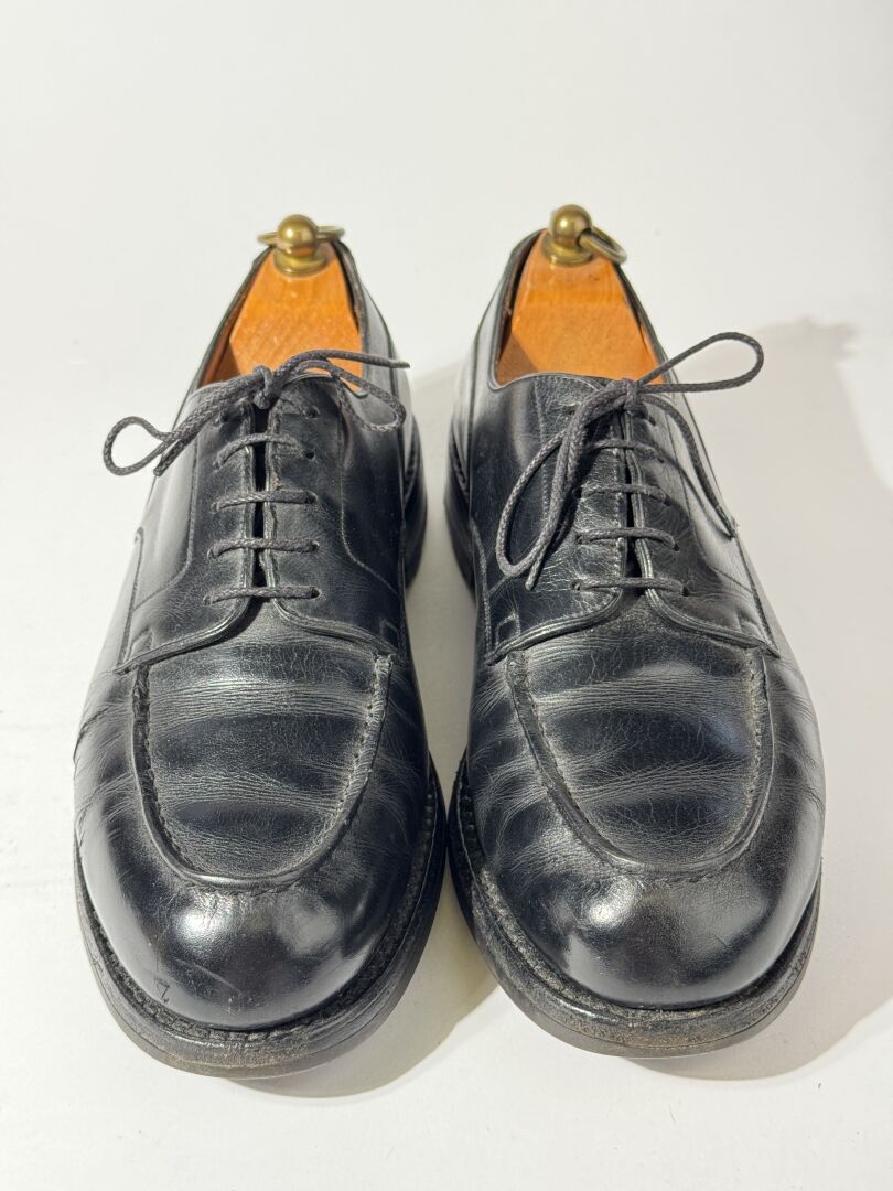 WESTON - Paire de chaussures modèle "Golf ", cuir noir, lacets, embauchoirs bois. Pochons en tissu. Pointure 42,5 (état d'usage)