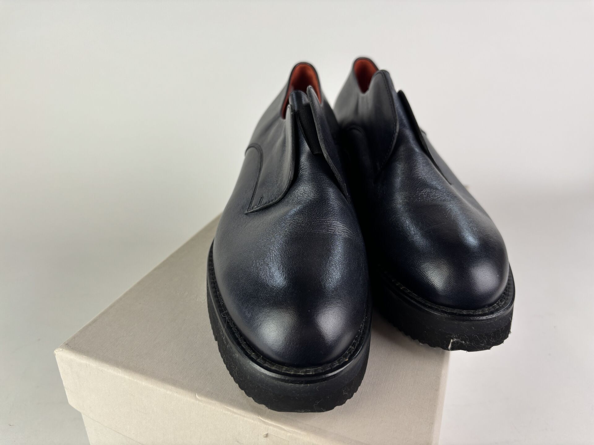 SANTONI - Paire de derby, cuir noir, petite plateforme. Pointure 40 - Haut. du talon : 4,5 cm (très bon état)