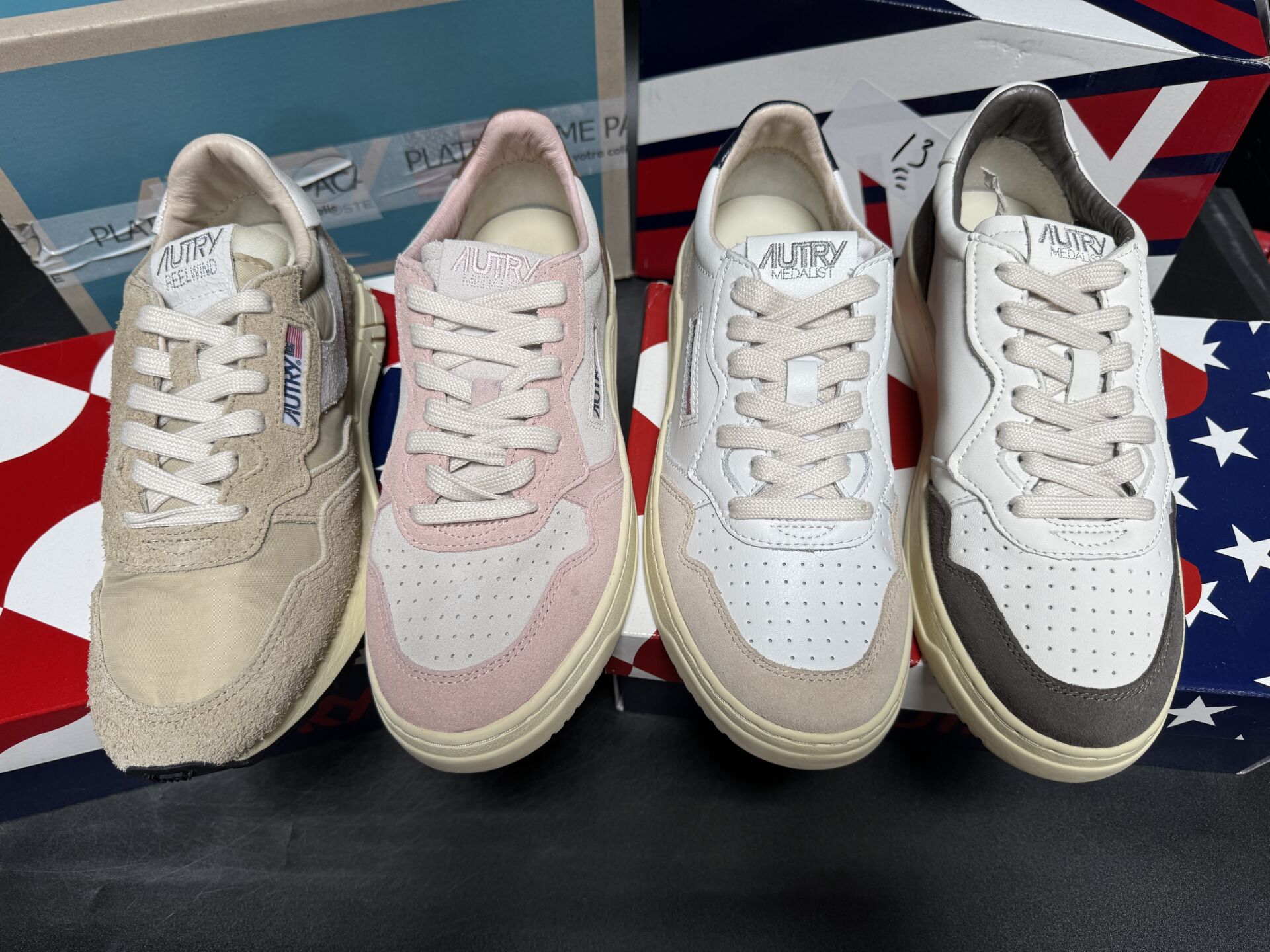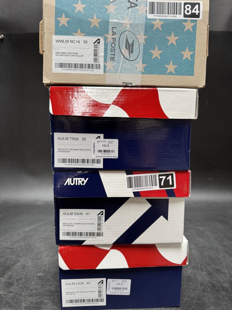 AUTRY - Ensemble de quatre paires de sneakers. Dans leur boite (en l'état) Pointures 38, 39, 40 et 41 Etat magasin