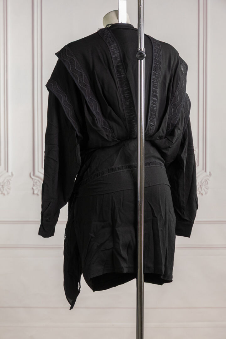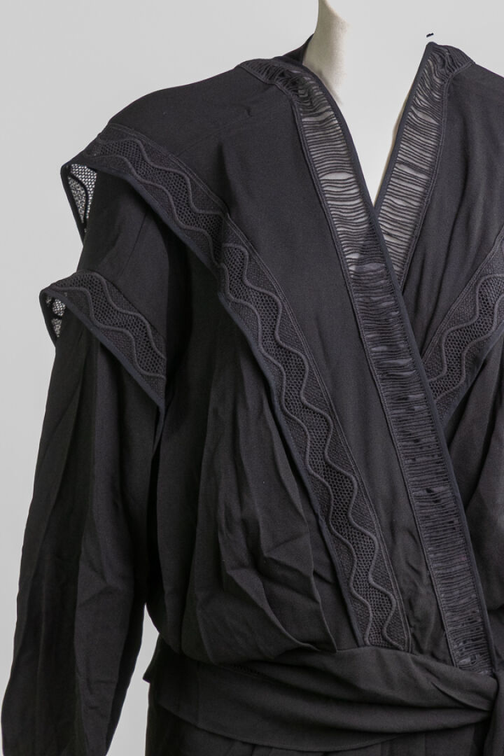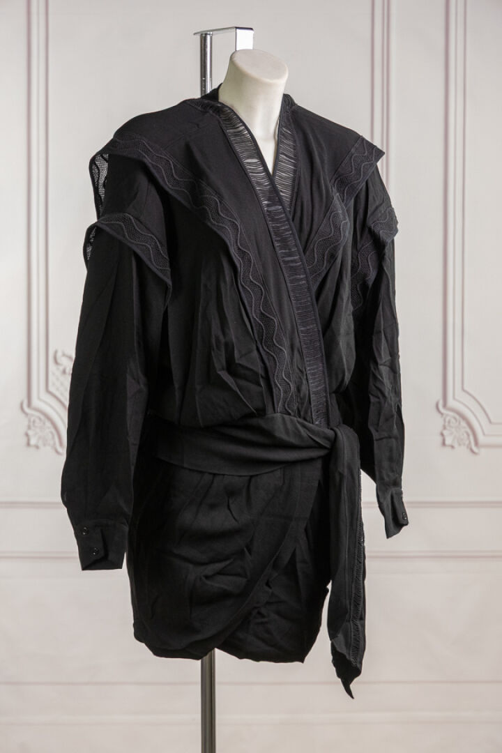 IRO - Robe cache-cœur "Elyn" en crêpe noire, manches longues. Etiquette magasin. Taille 38