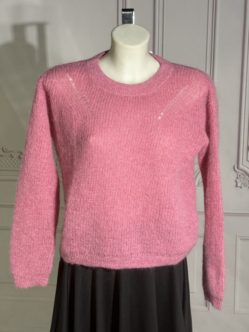 SUD EXPRESS - Pull en mailles fantaisie rose malabar, encolure ronde, manches longues. Tailles 1 Etat magasin