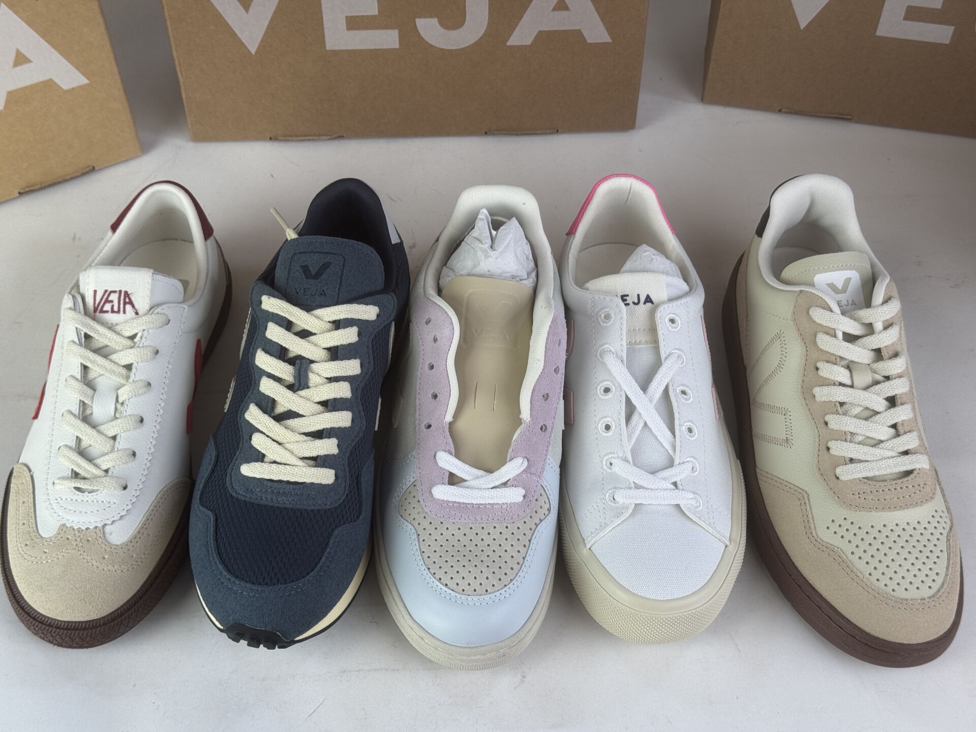 VEJA - Ensemble de cinq paires de sneakers. Pointure 39 (Etat magasin, boites abimées)