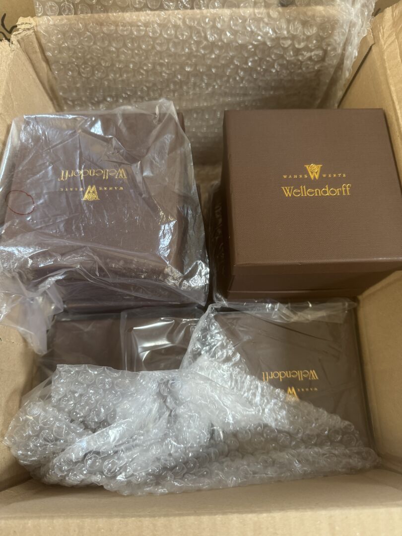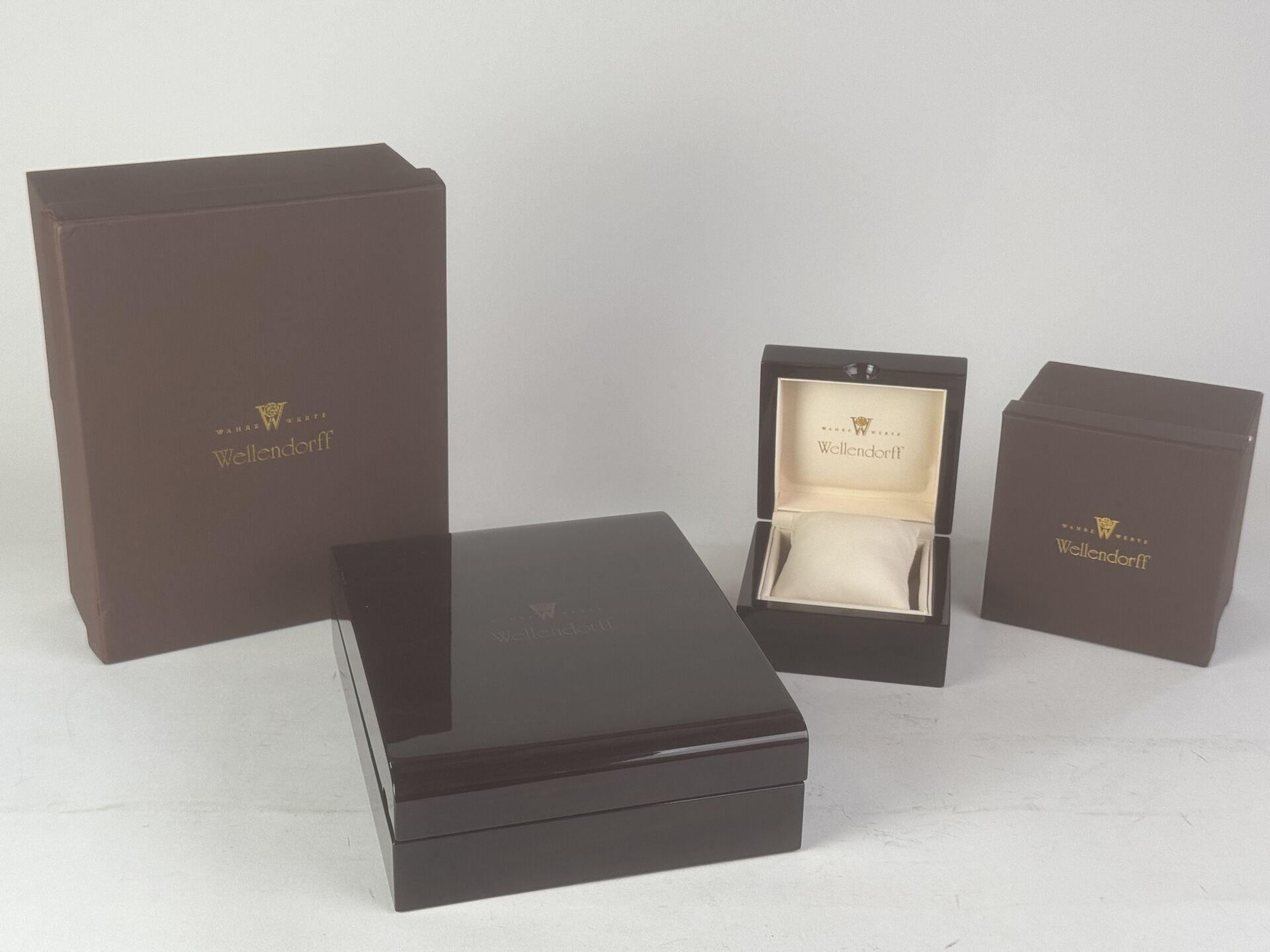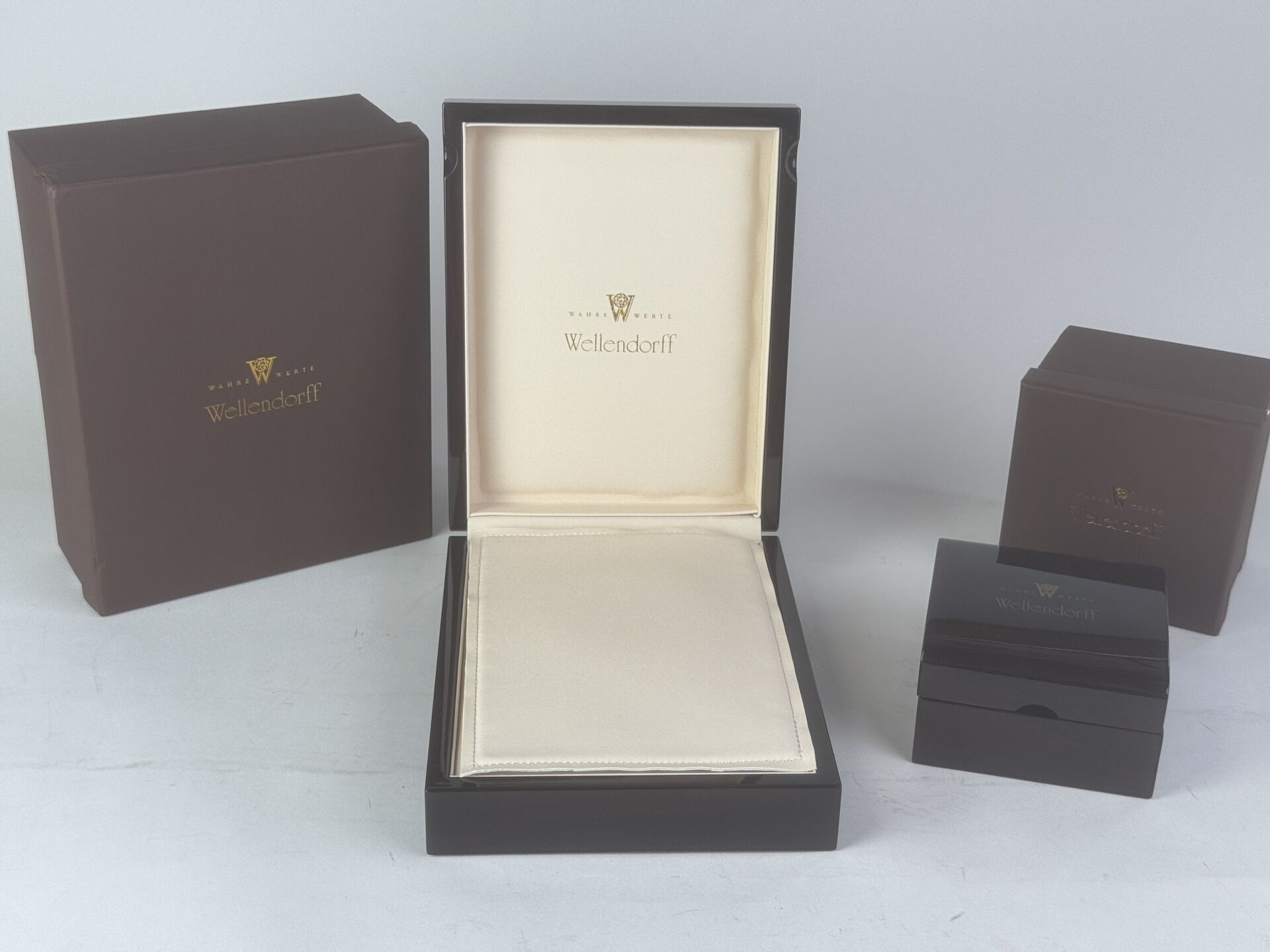 Lot comprenant 5 boites et sacs en papier dont DIOR, LOUIS VUITTON, HERMES et CHANEL. On joint 8 écrins portant la marque WELLENDORF. En l'état
